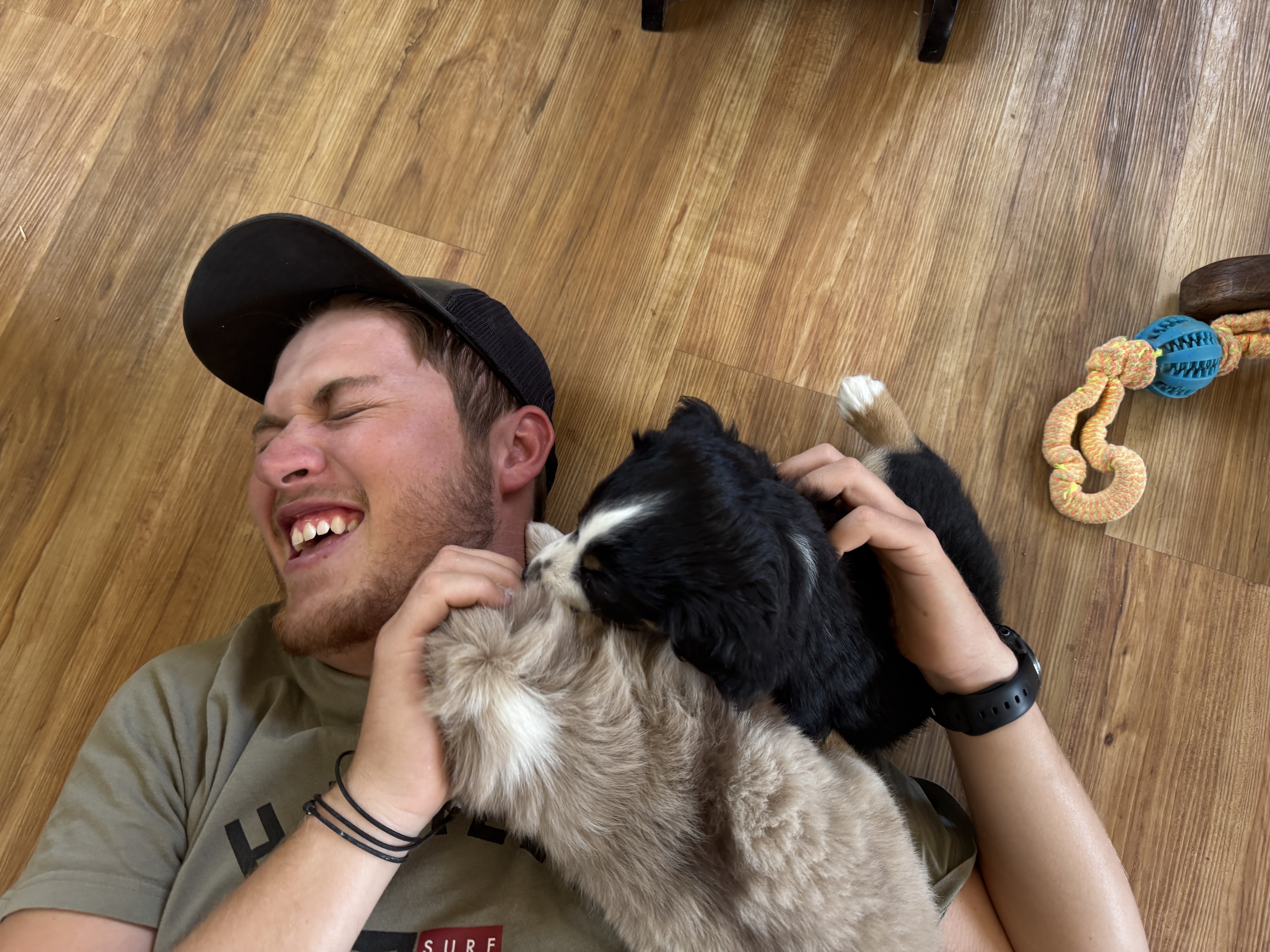 27. Hi Roni! This is Michelle and Johnny Foust owner of Brody (cole). We just wanted to update you on him. First and foremost he’s an amazingly smart and loving puppy. He was easy to potty train thanks to you for teaching him how to use a doggy door. And because of you he also loves all of his toys (stuffed animals). We also still give him the same chewies which he loves. He is growing like a weed.. Lol. He knows how to sit and shake. He fetches and knows to release. He also knows the words chewie, ball and play among others. We are so very much in love with our baby. He gets LOTS of love and play time. I am sending you pictures too!