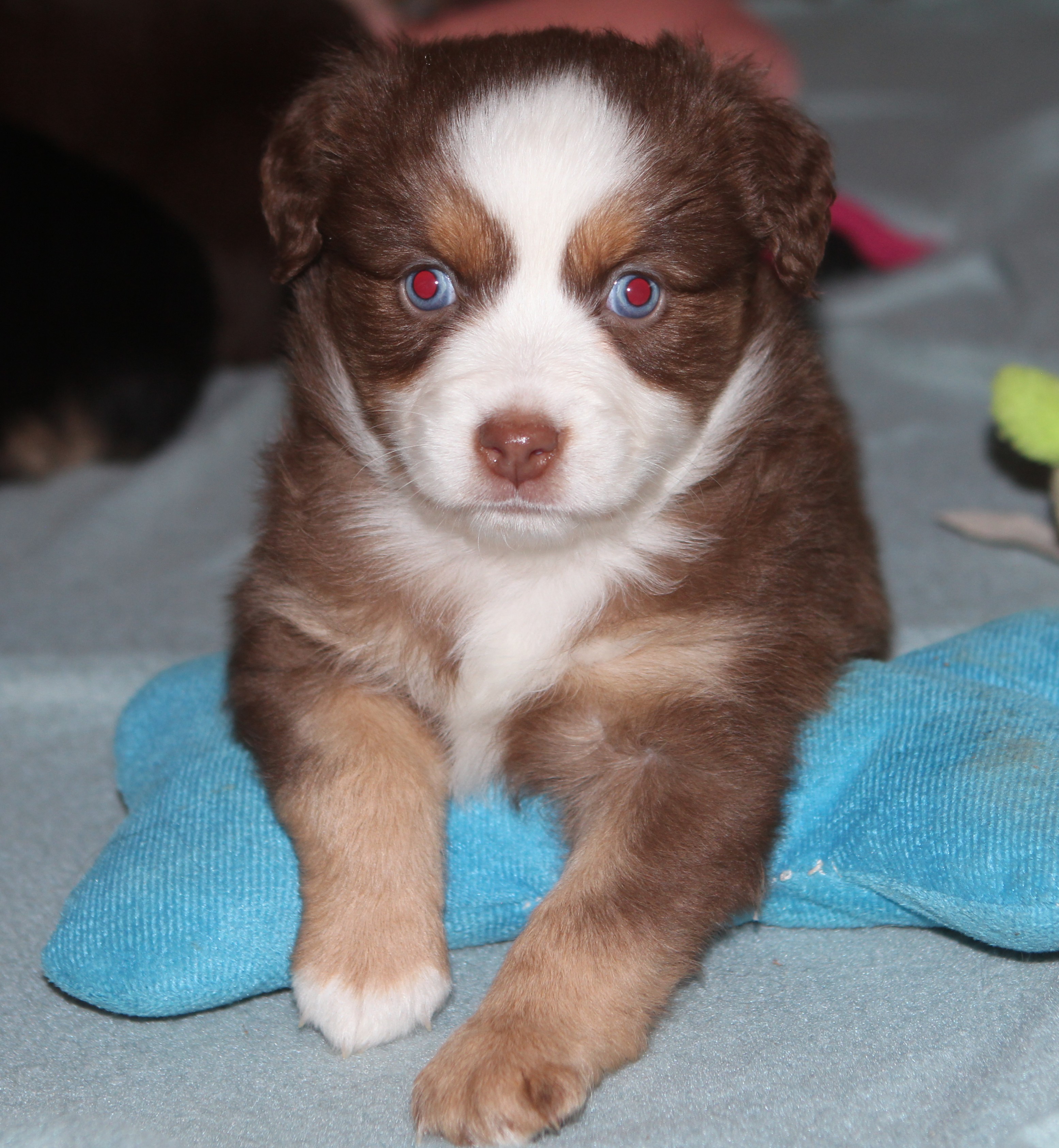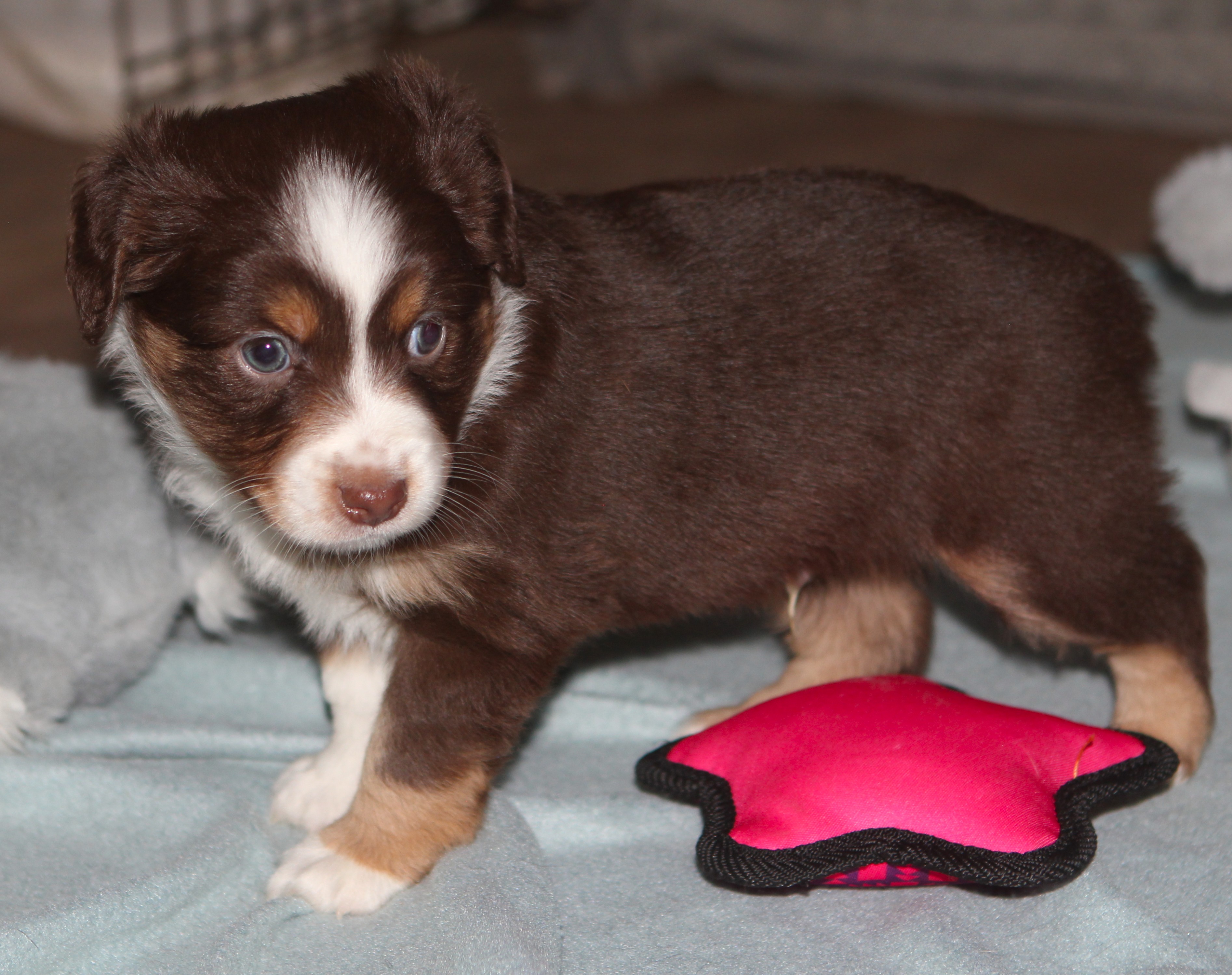 Hi there, I have been looking for a toy Australian shepherd for a while now and your webpage stuck out among the others in CO. I am wanting a red merle female with blue eyes full grown anywhere from 9-20 lbs or so. I am looking for a puppy and was just curious on when your next litter might be or the chances of you having this particular puppy at all. My two other dogs told me they needed a little sister and this breed just seemed right. Any info would be a huge help, thanks for your time I love the pics of the puppies you have up 🙂