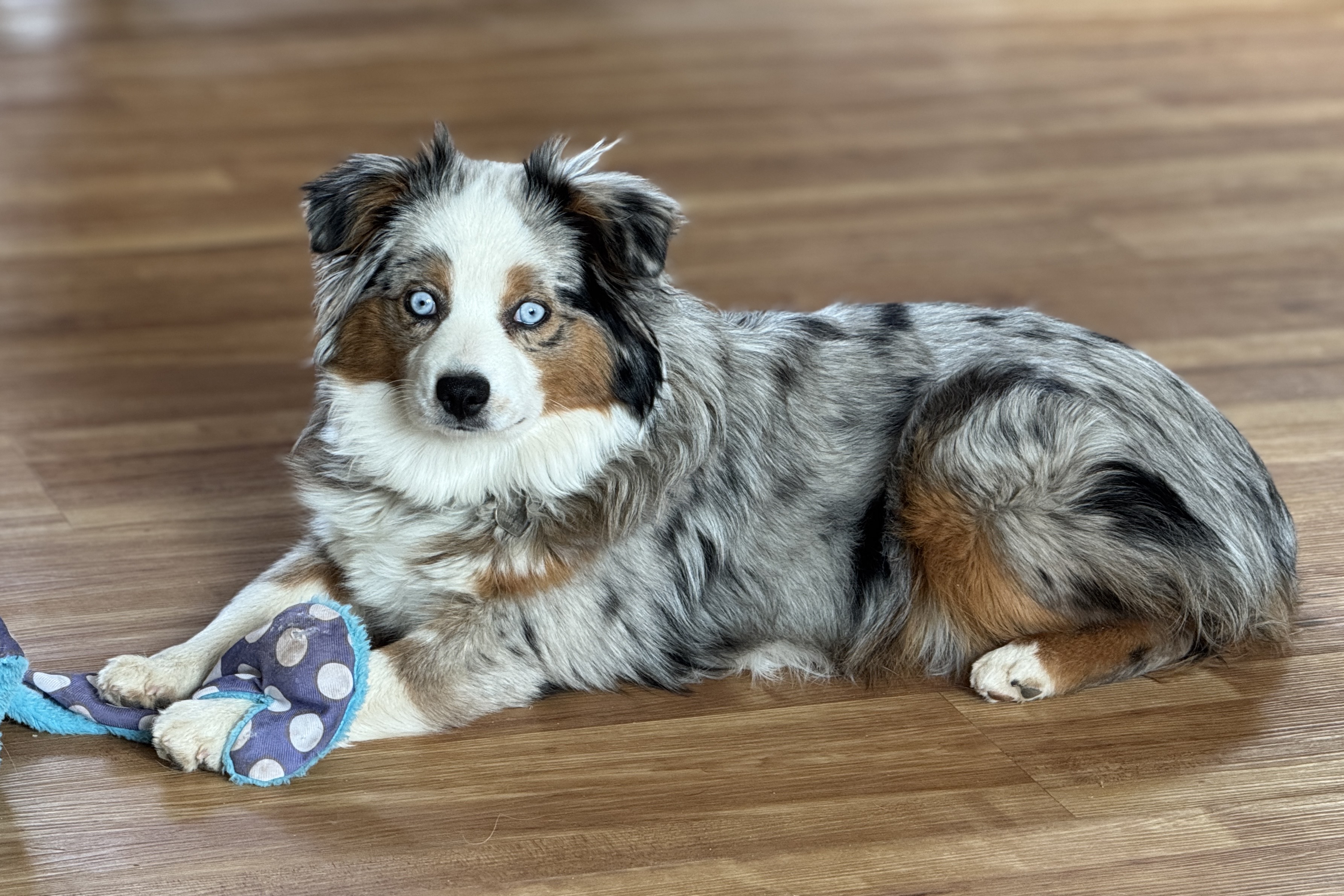 Misty is Ziggy & Ace’s daughter. She is a tenderhearted and sweet pup! We hope to see her first litter in the fall of 2025! ASDR registered and DNA clear by parentage.