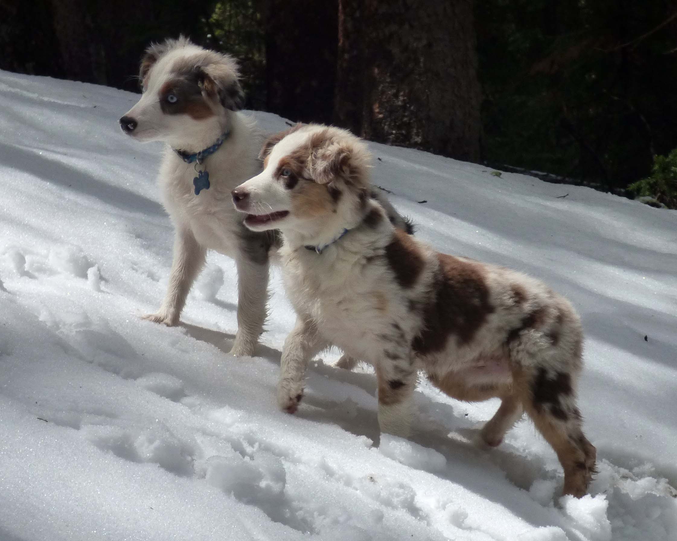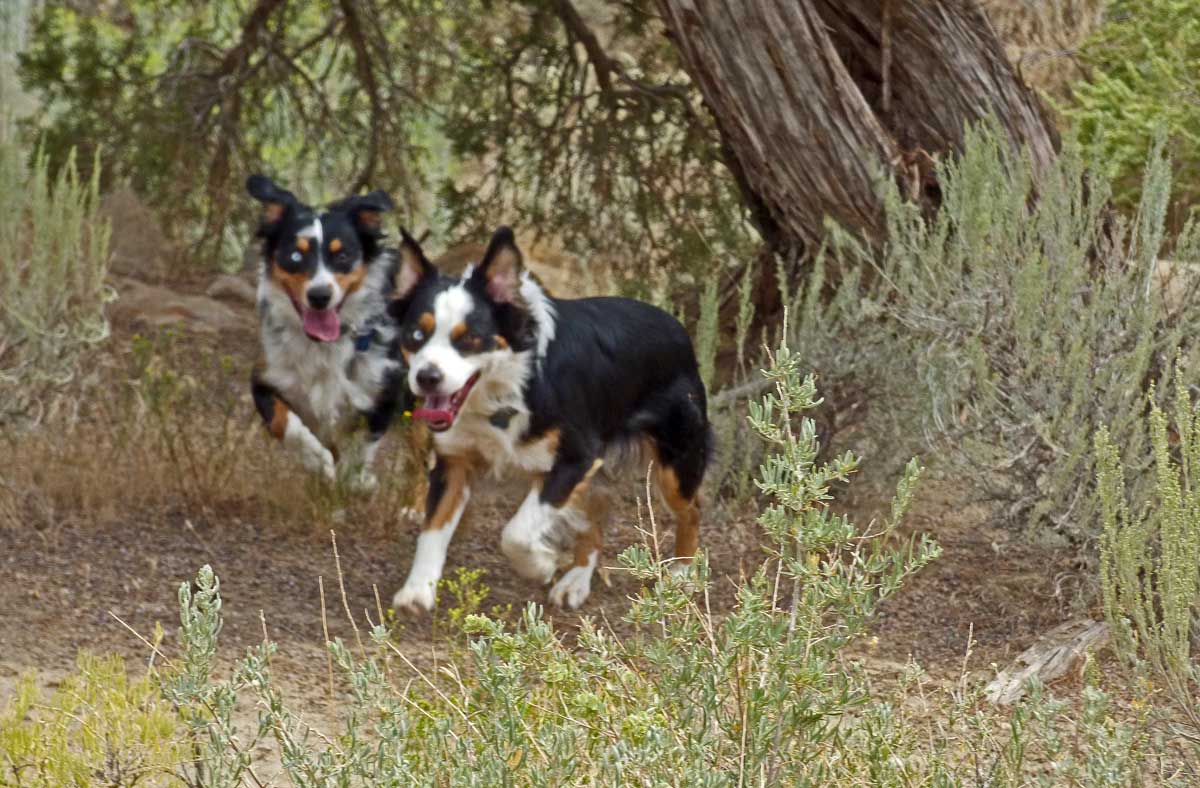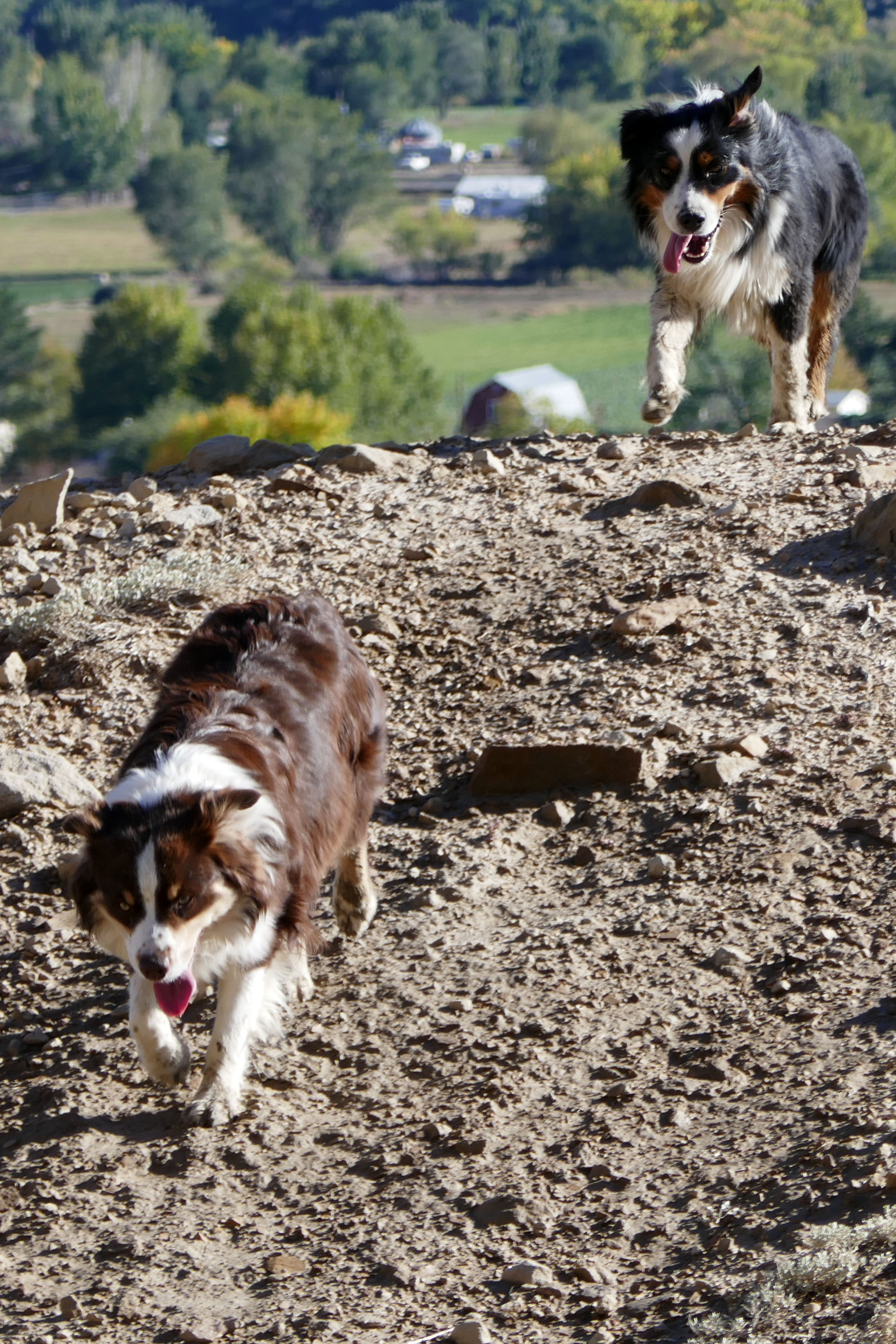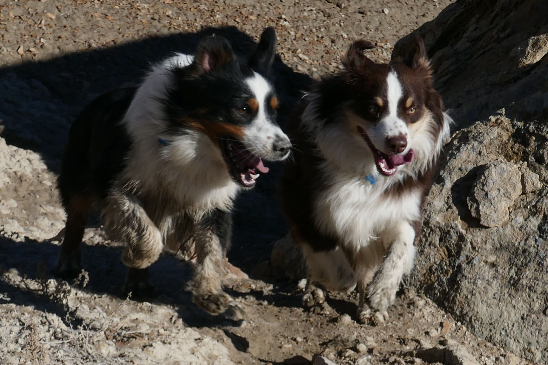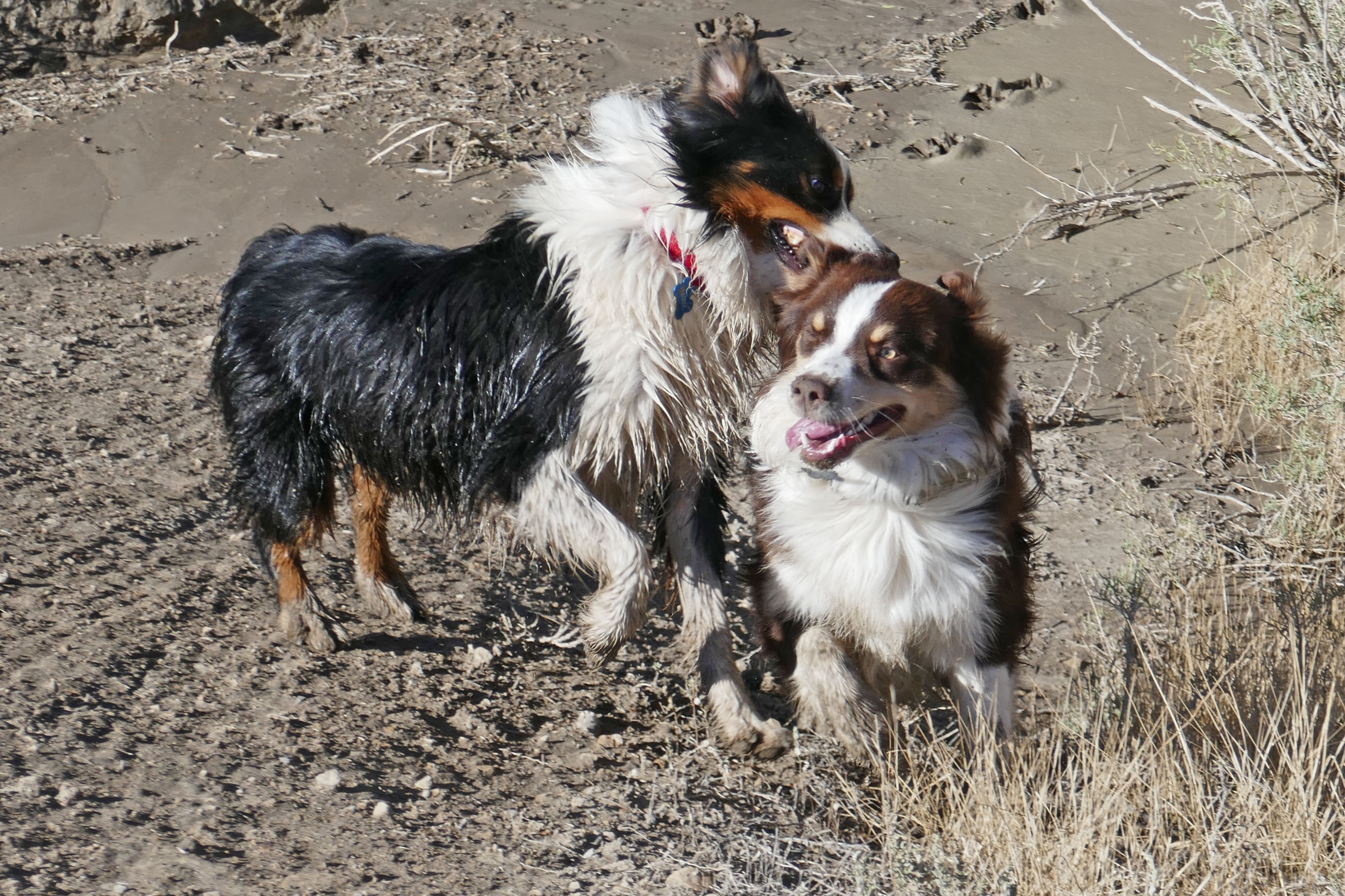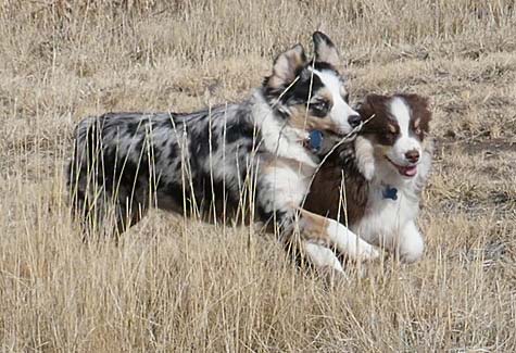 Piper as a gangly puppy with Roni at Mesa Lakes