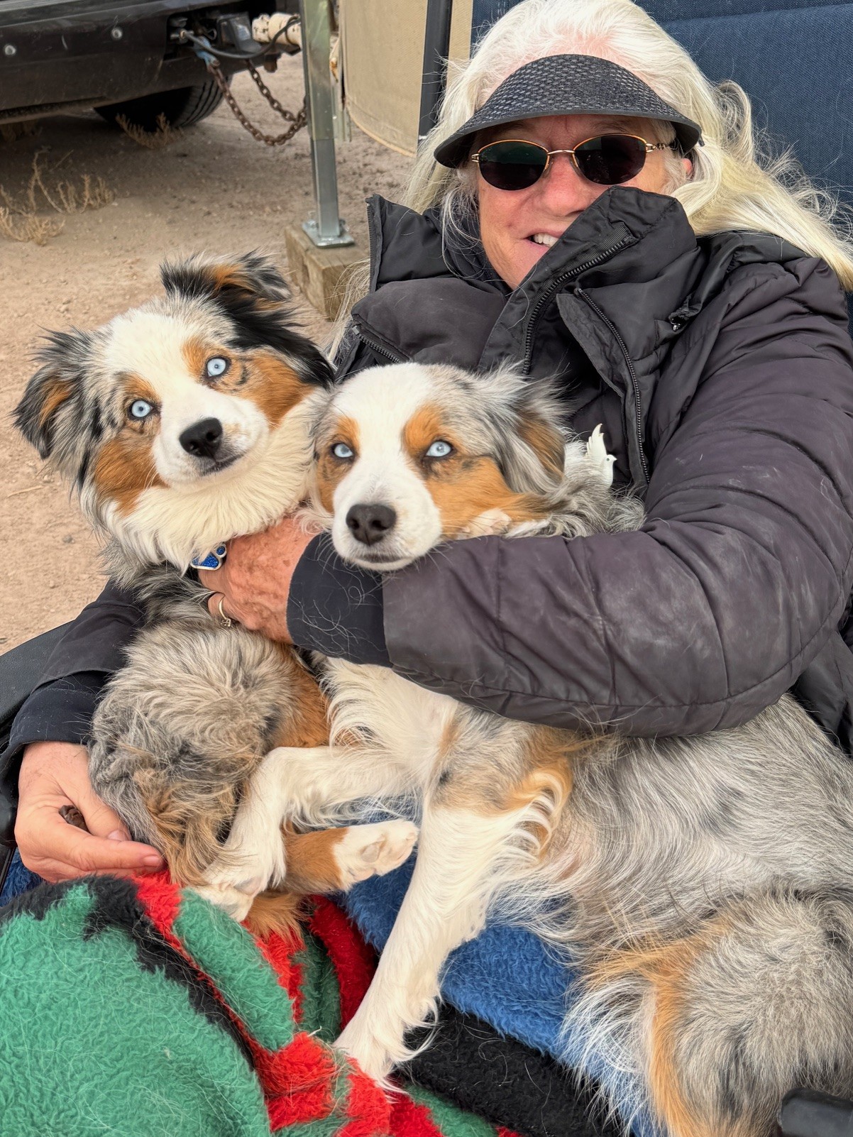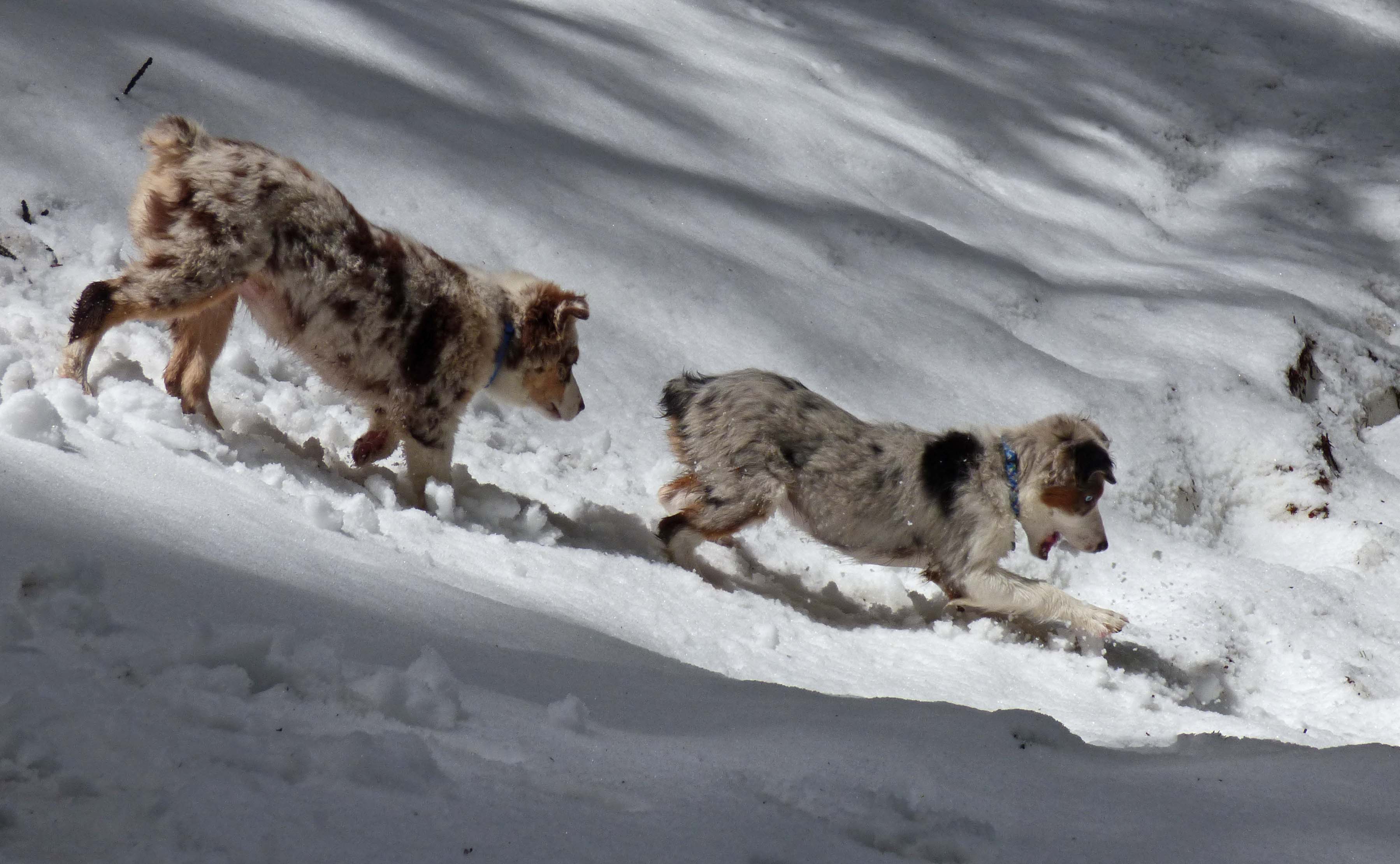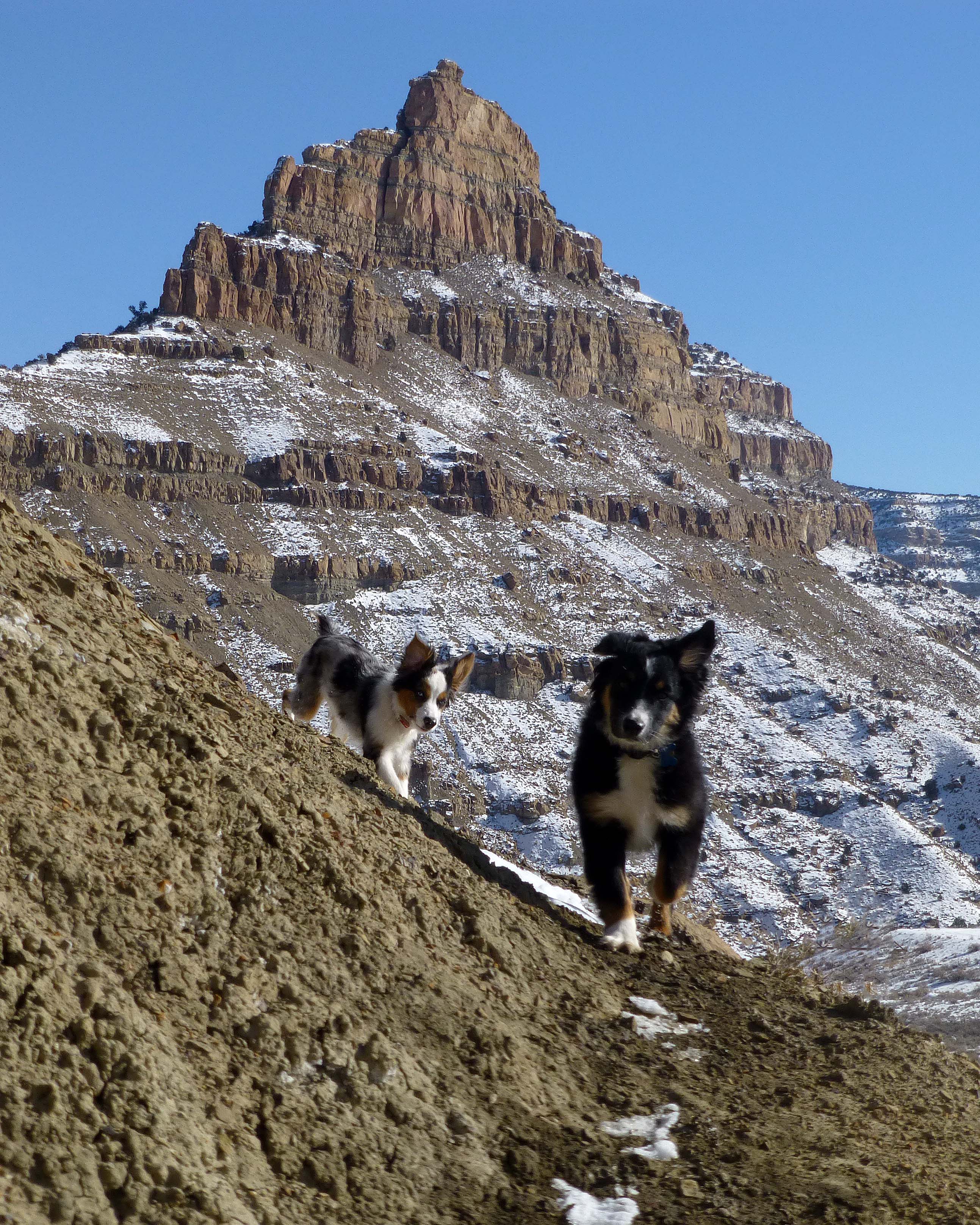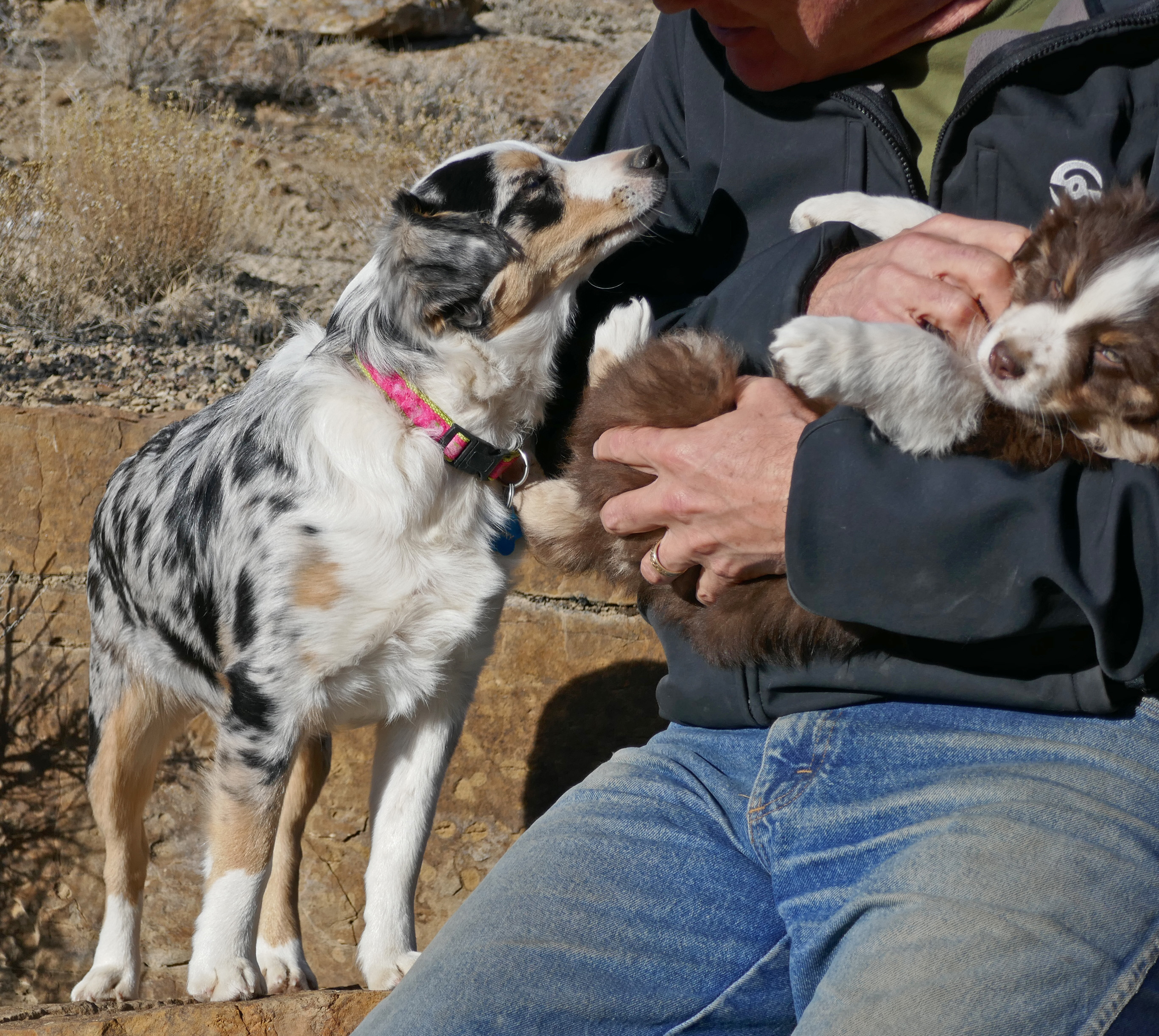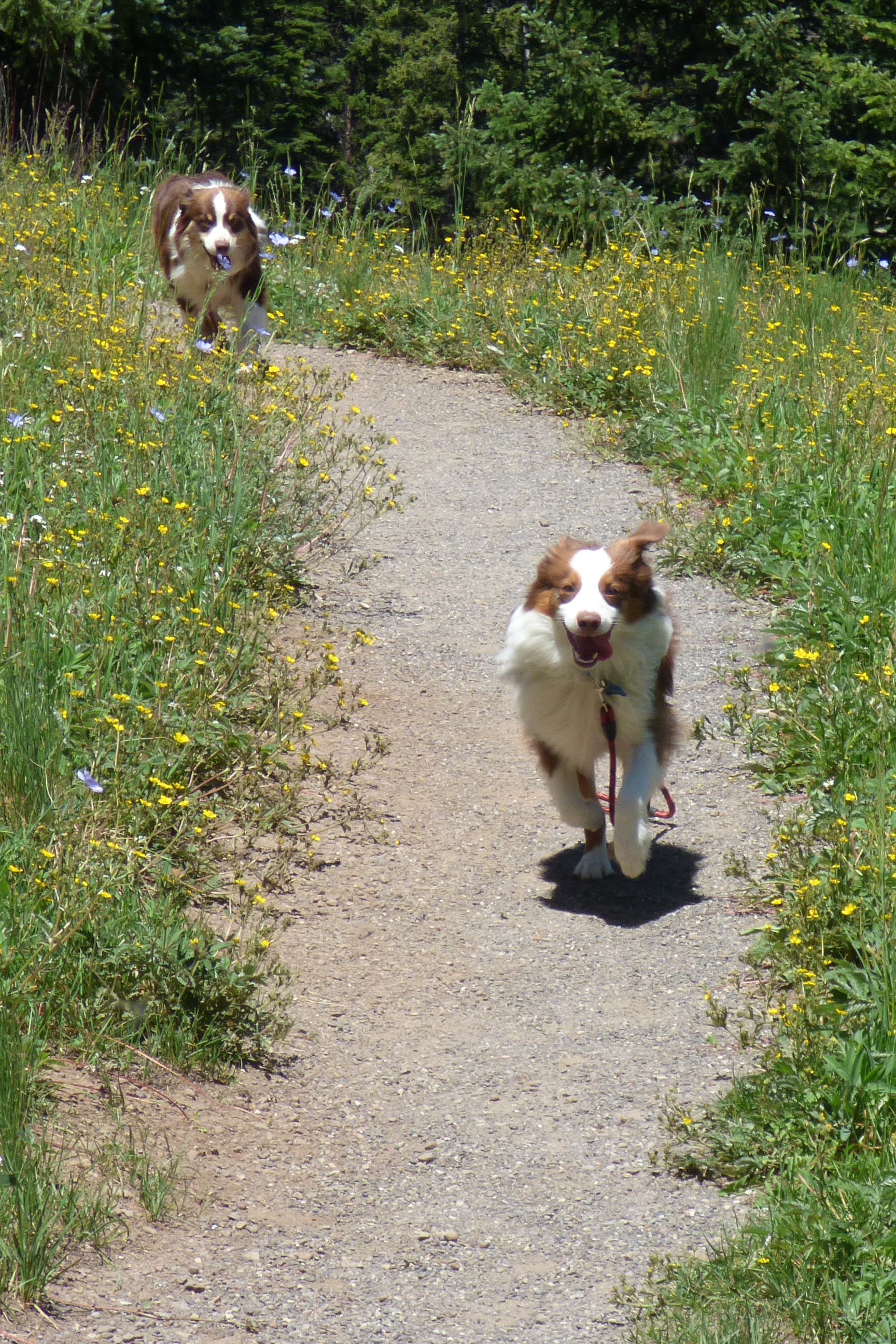 Piper as a gangly puppy with Roni at Mesa Lakes