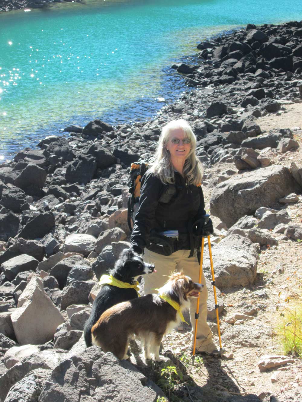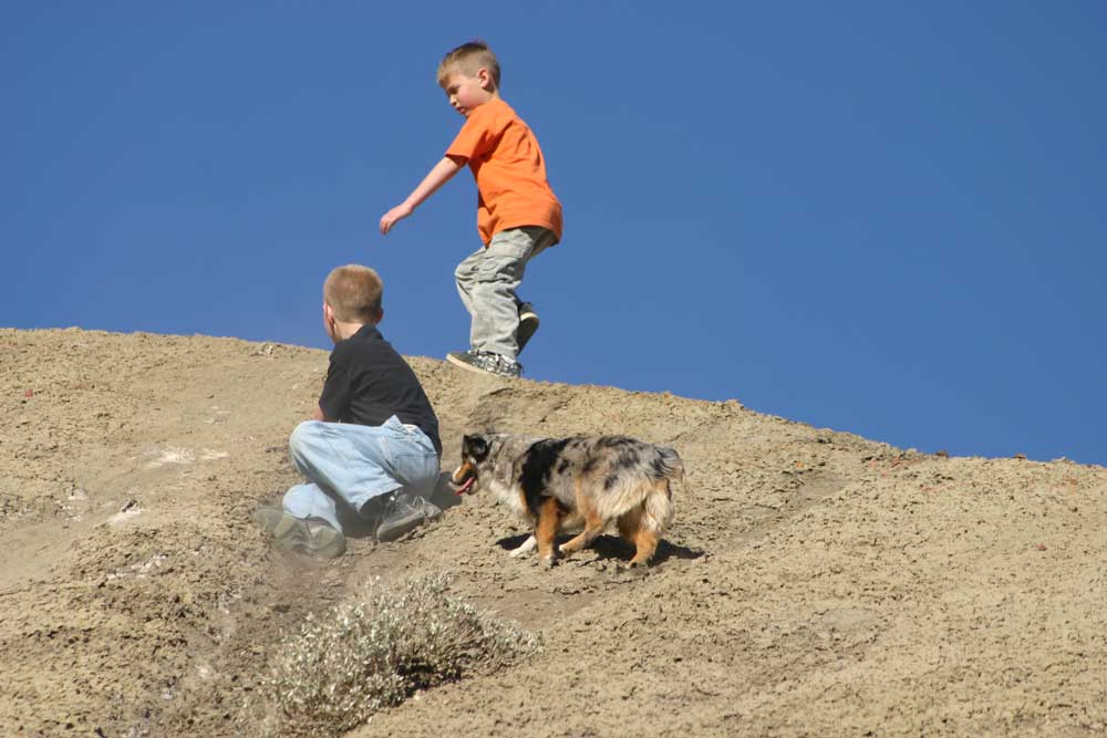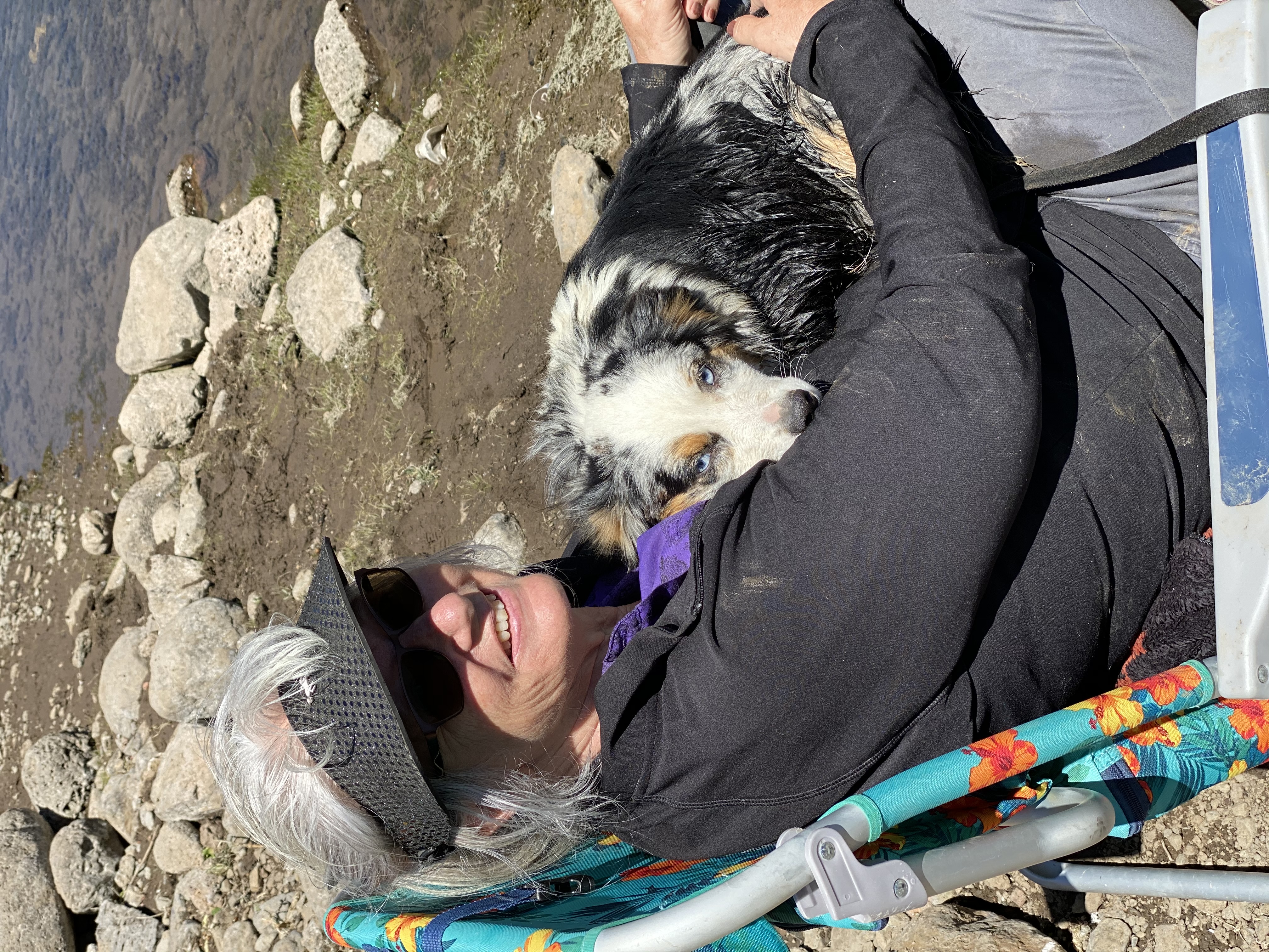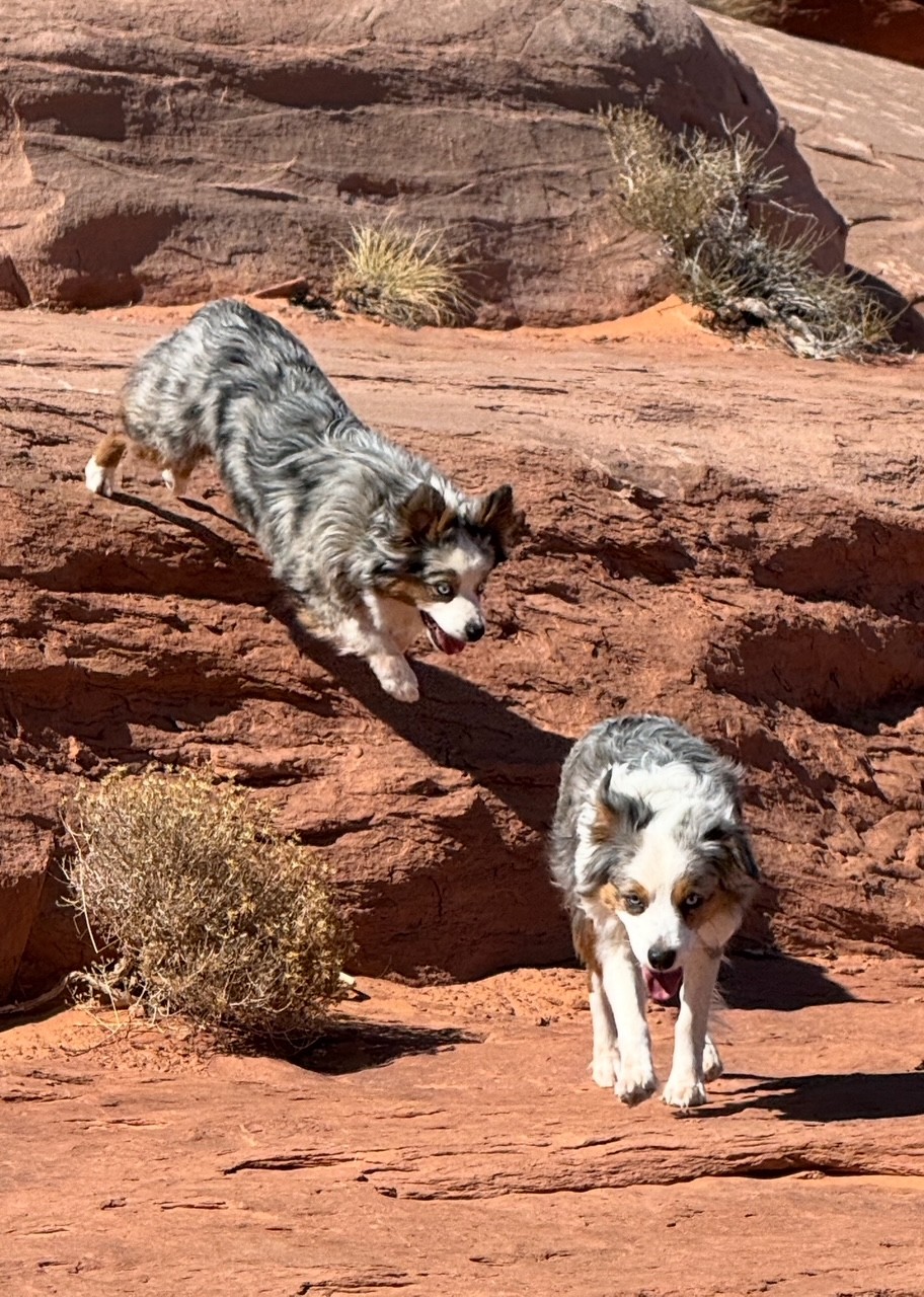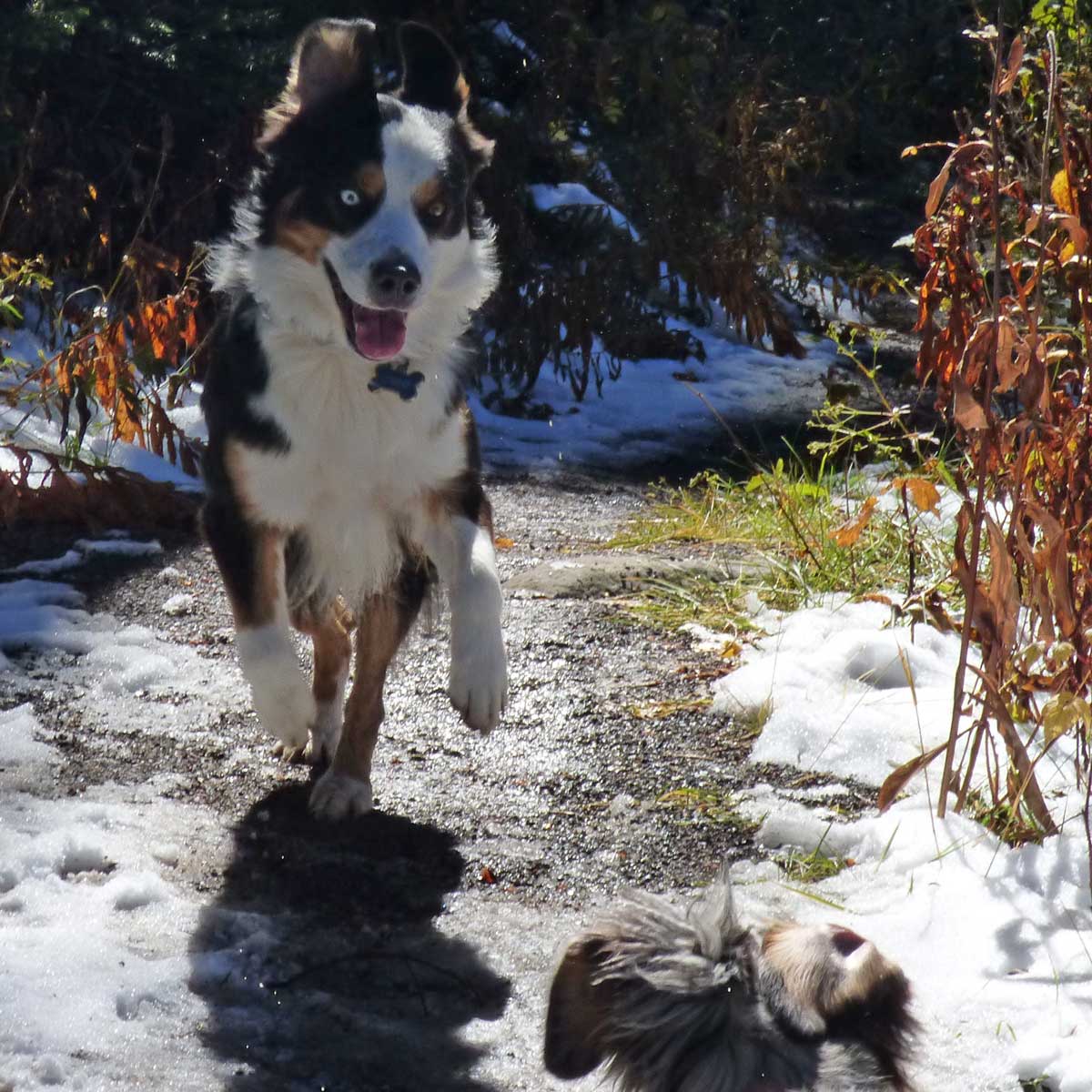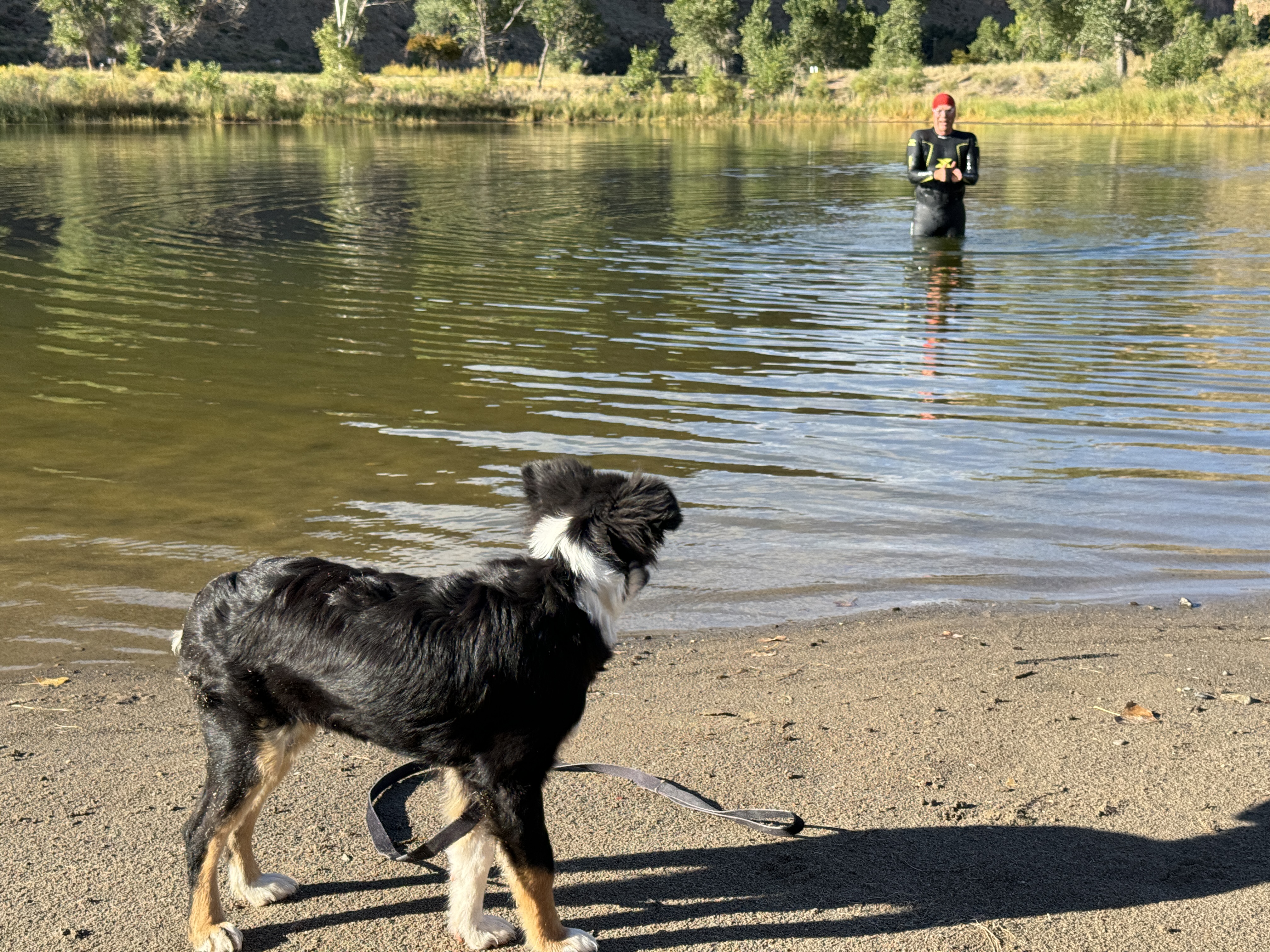 Piper as a gangly puppy with Roni at Mesa Lakes