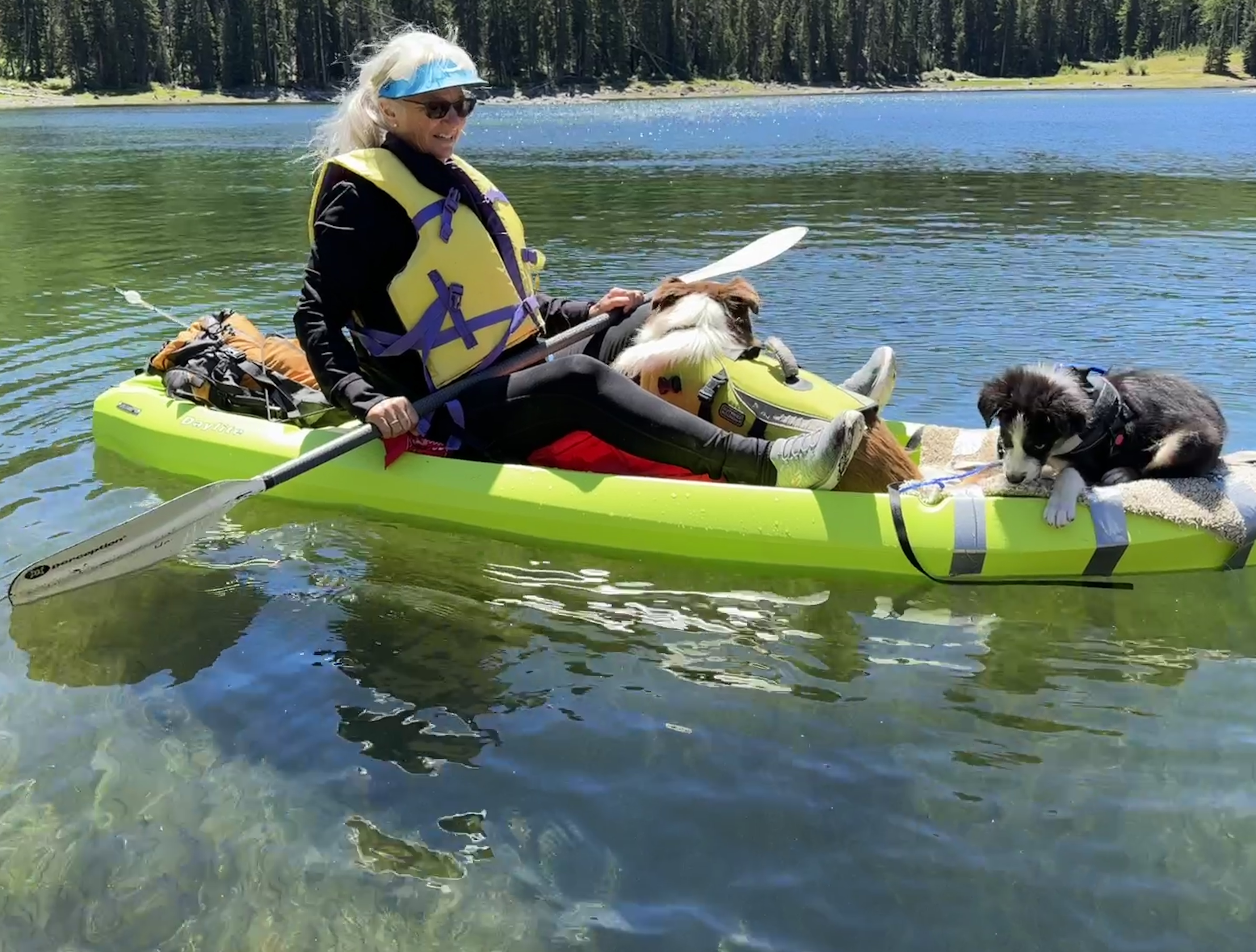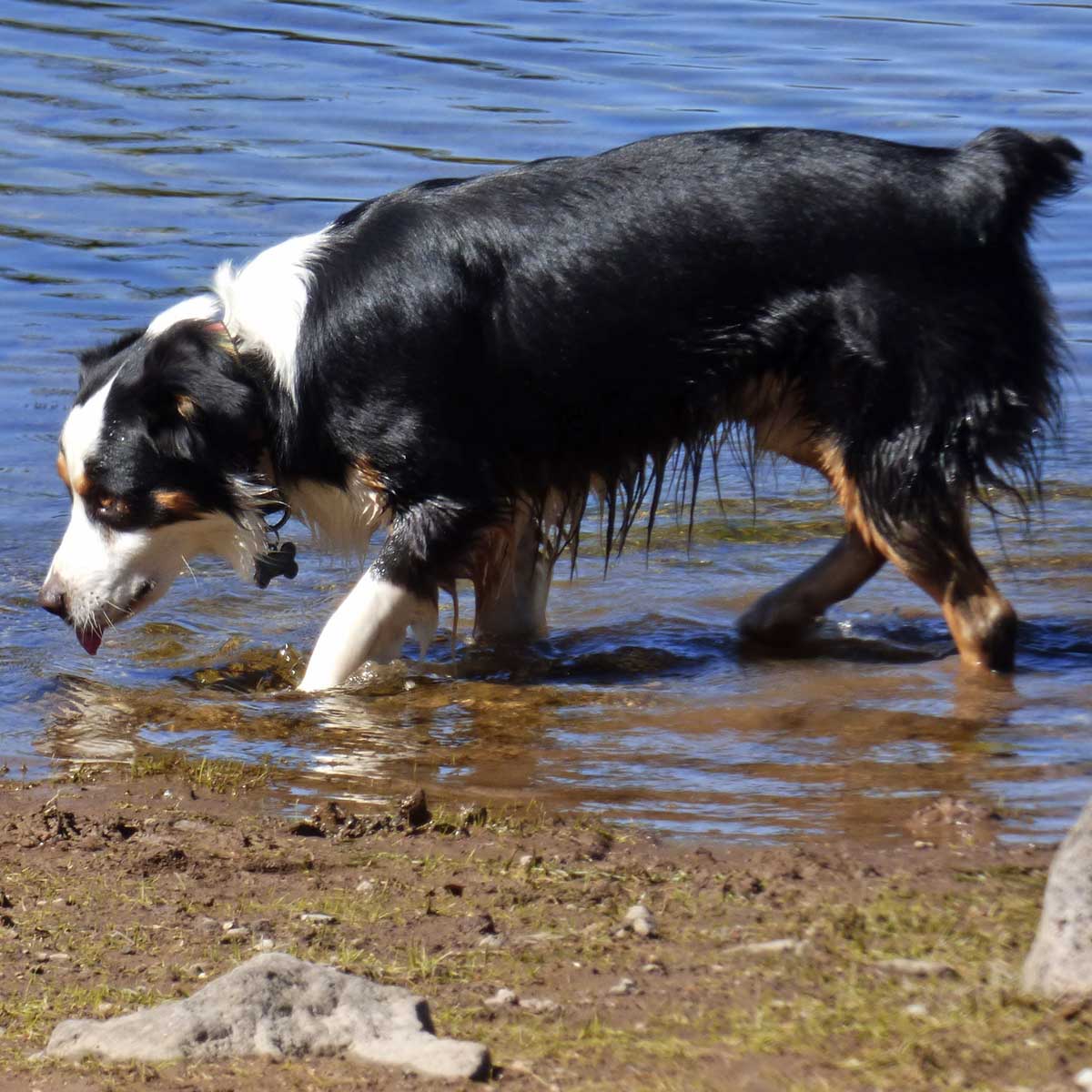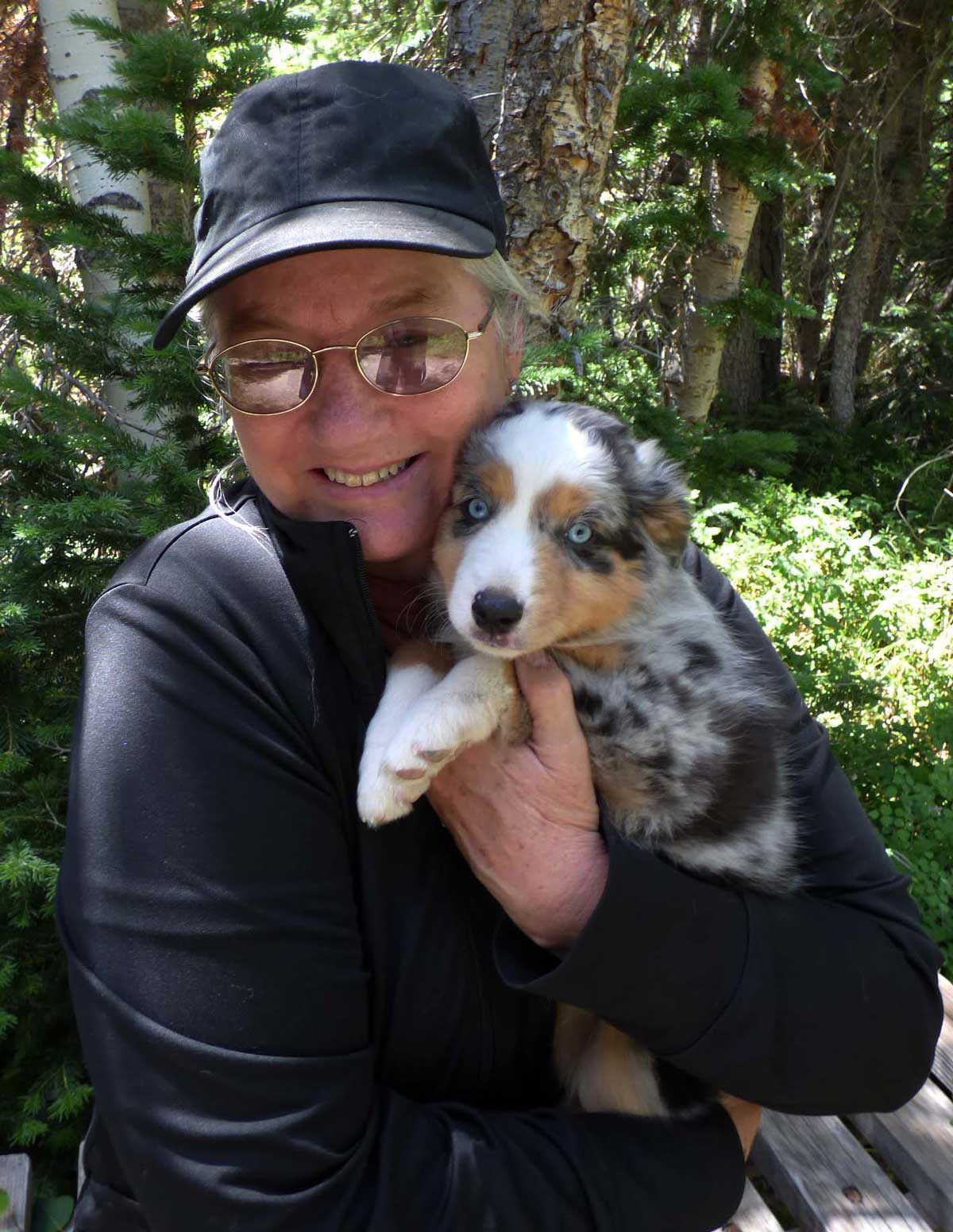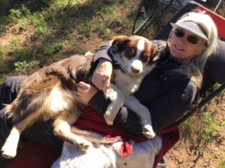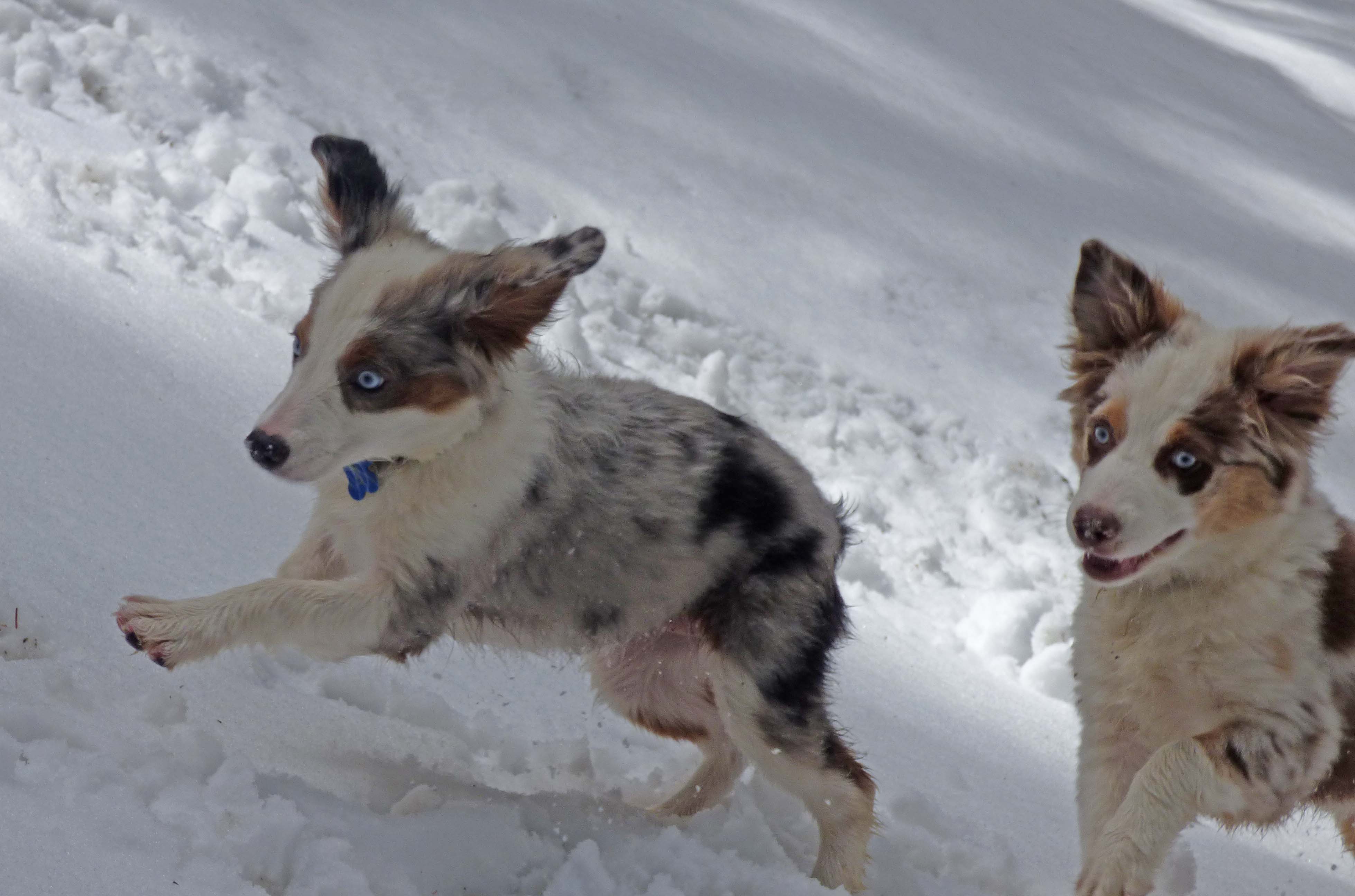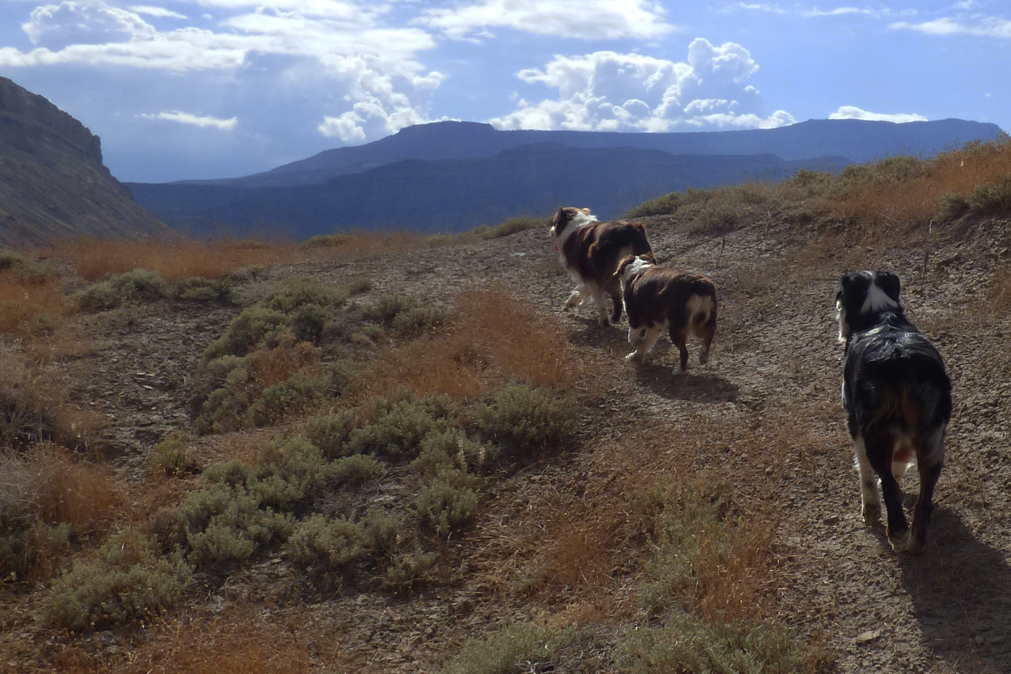 Piper as a gangly puppy with Roni at Mesa Lakes