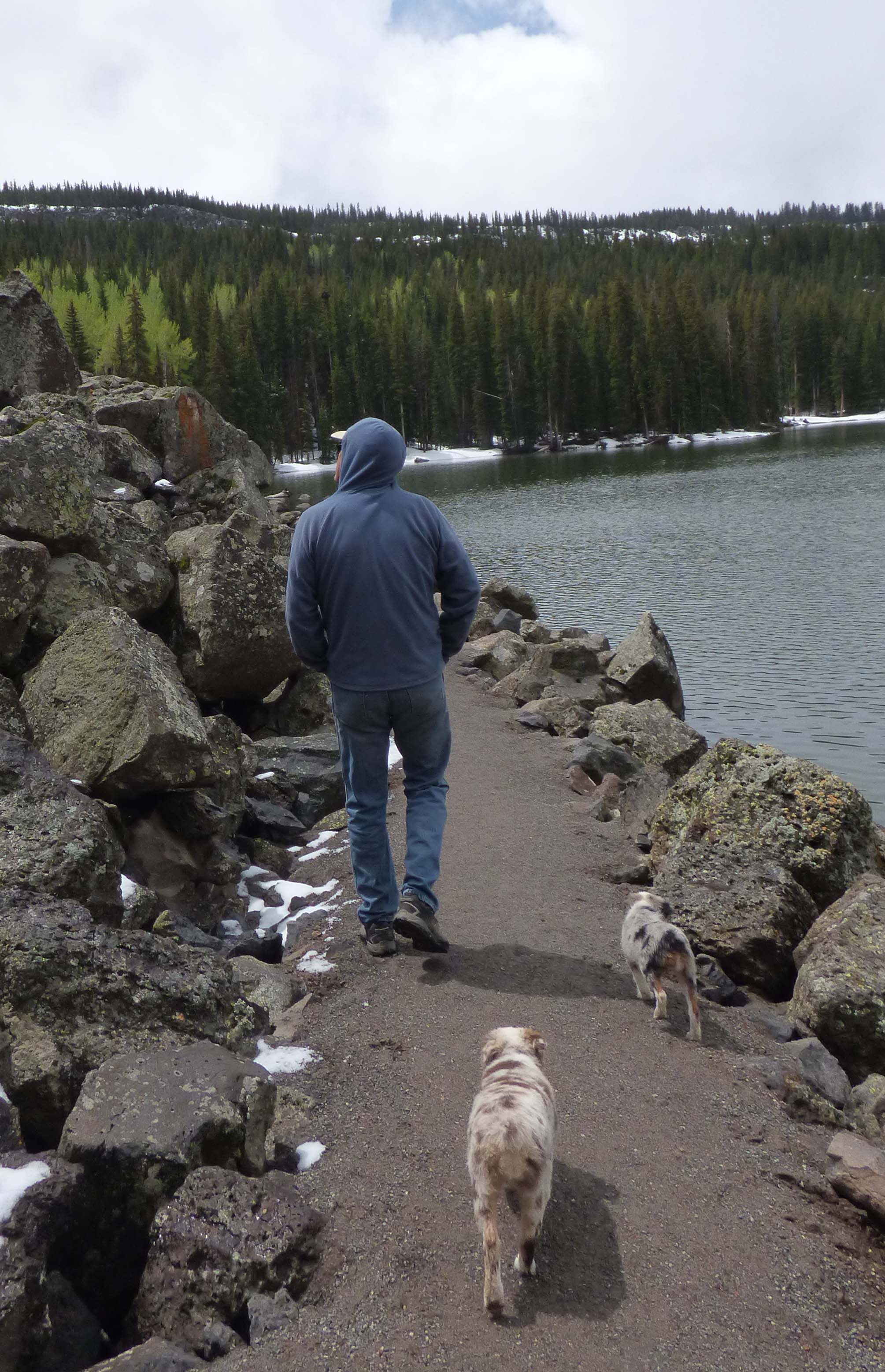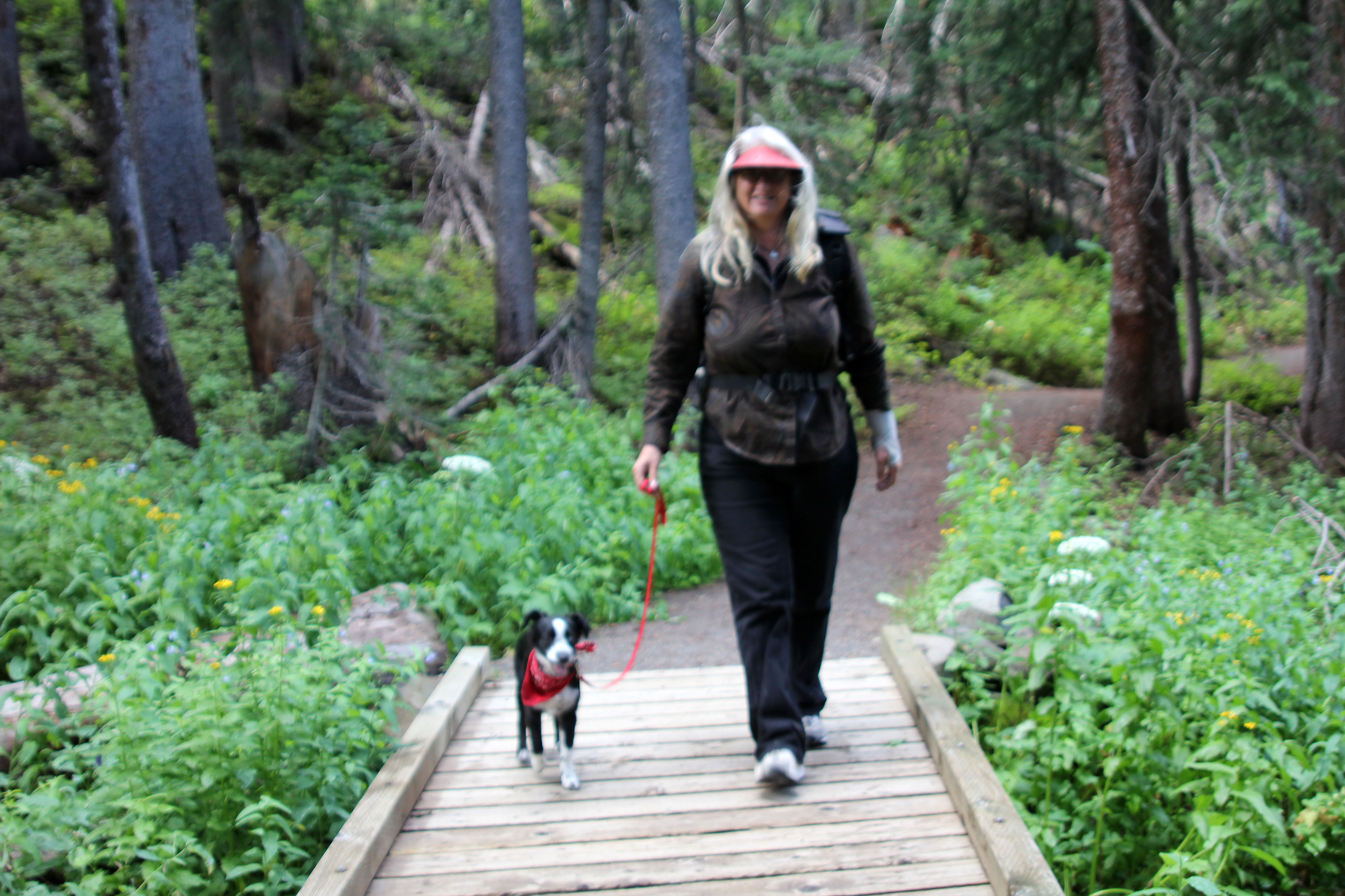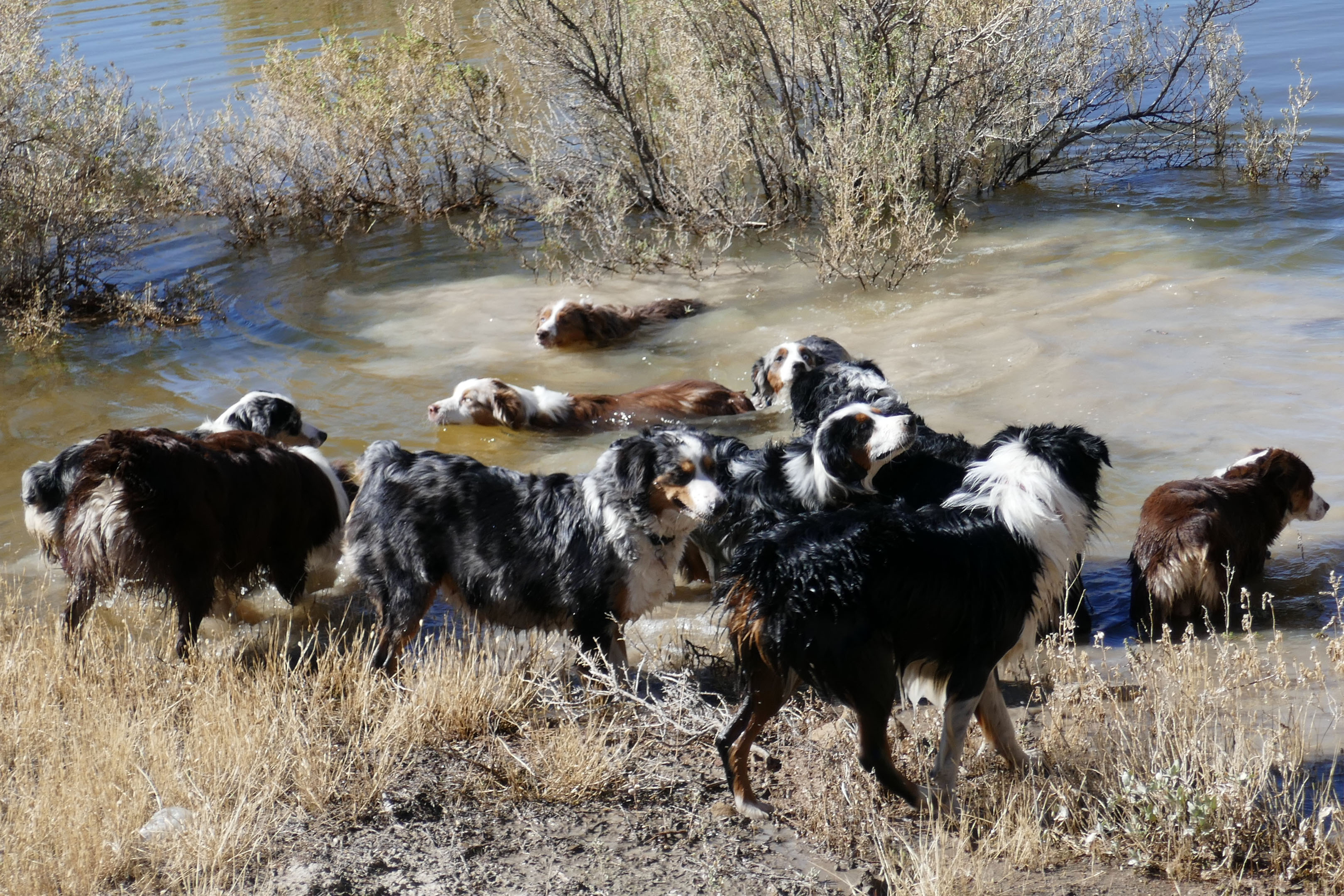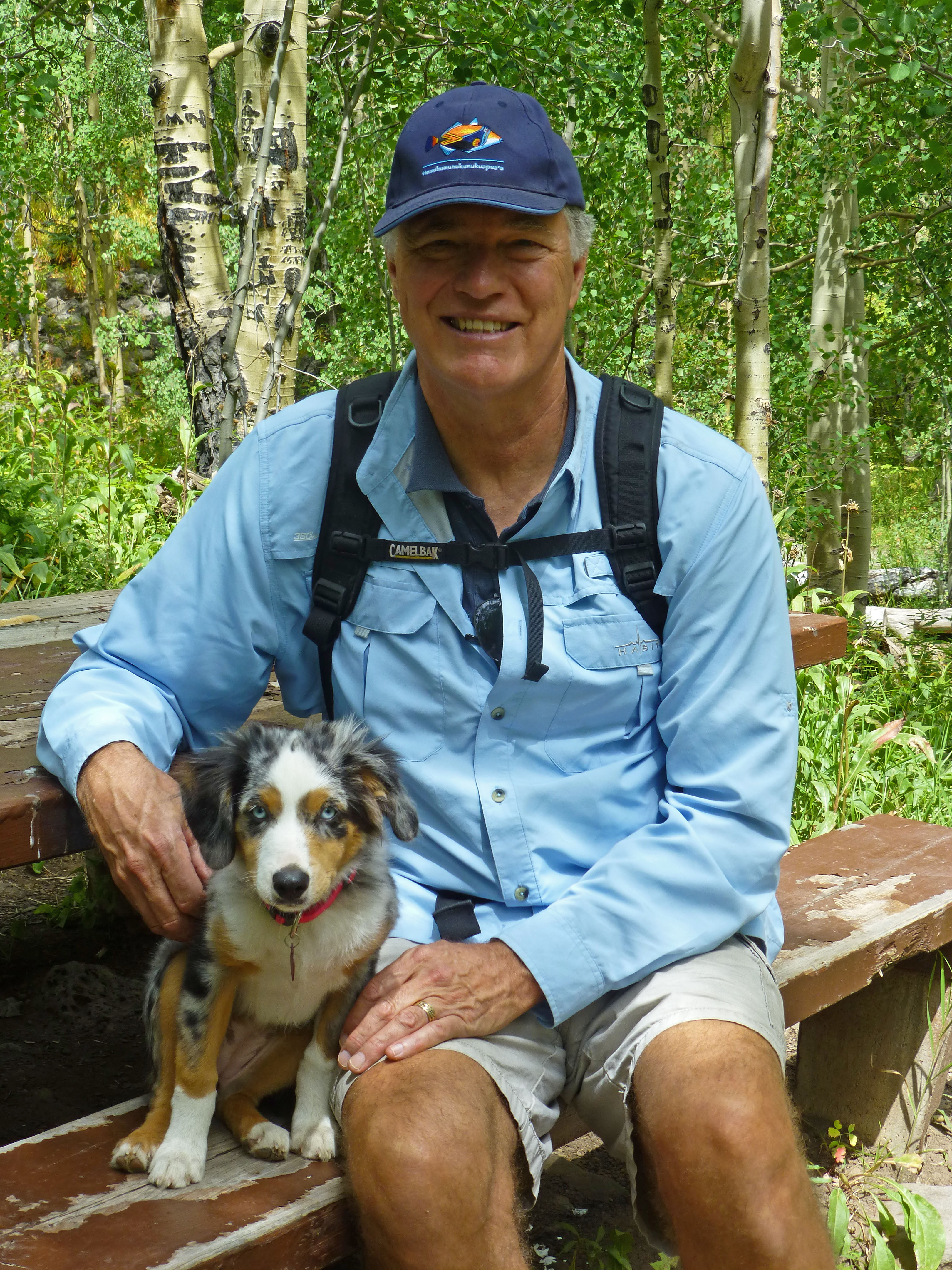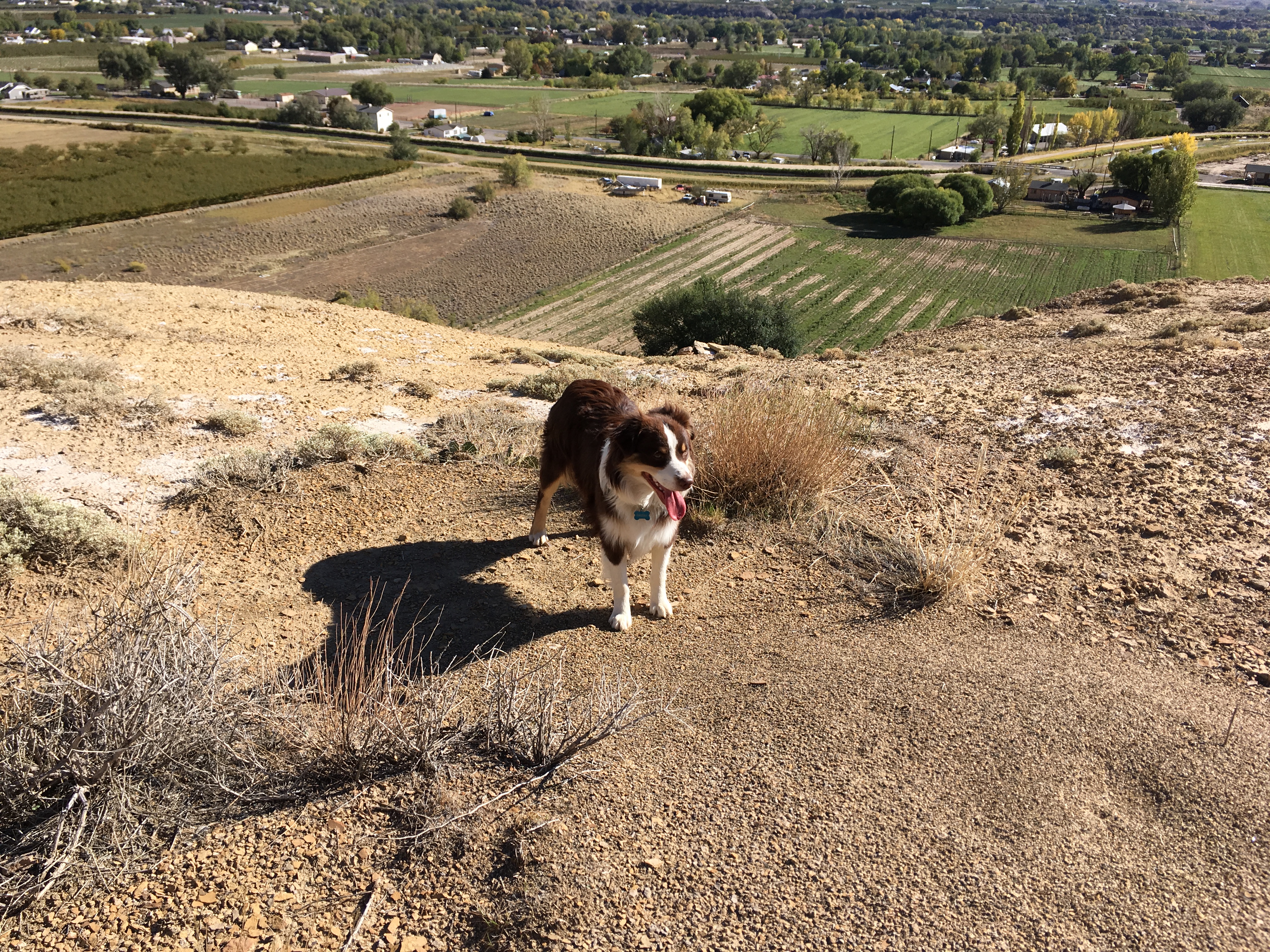 Piper as a gangly puppy with Roni at Mesa Lakes