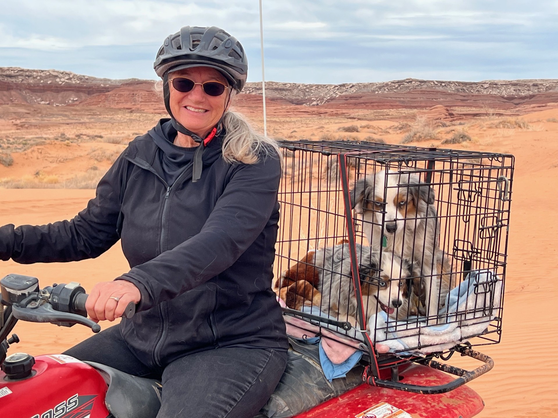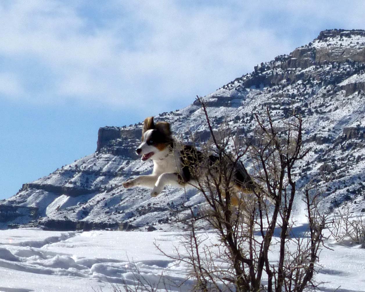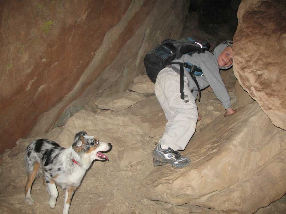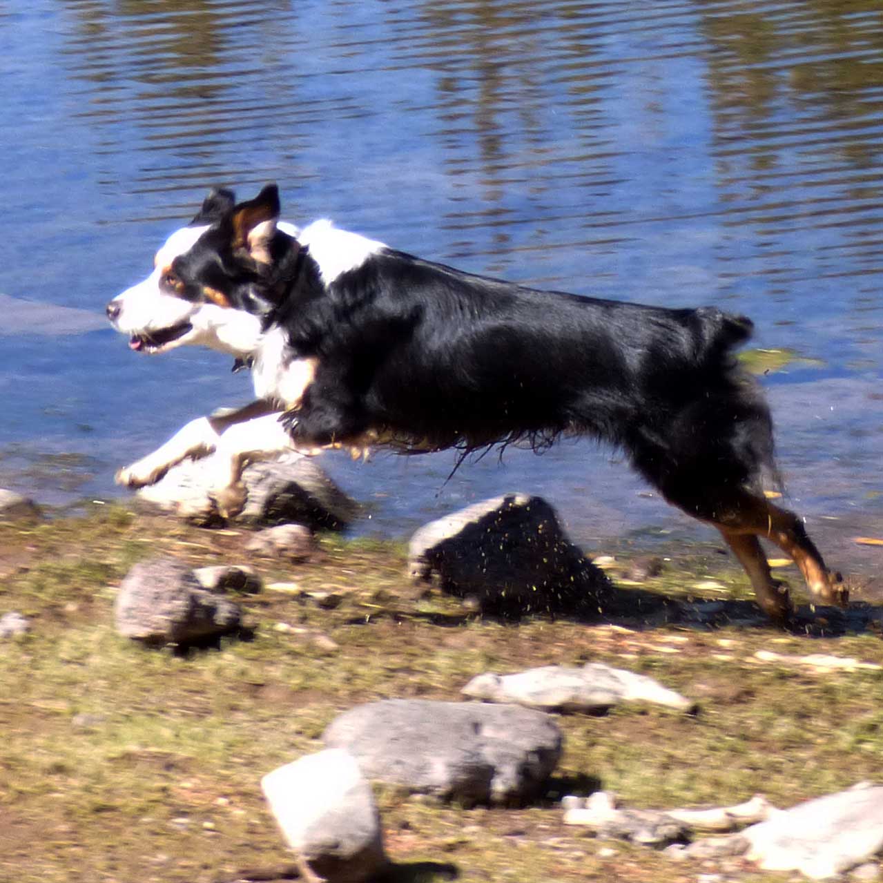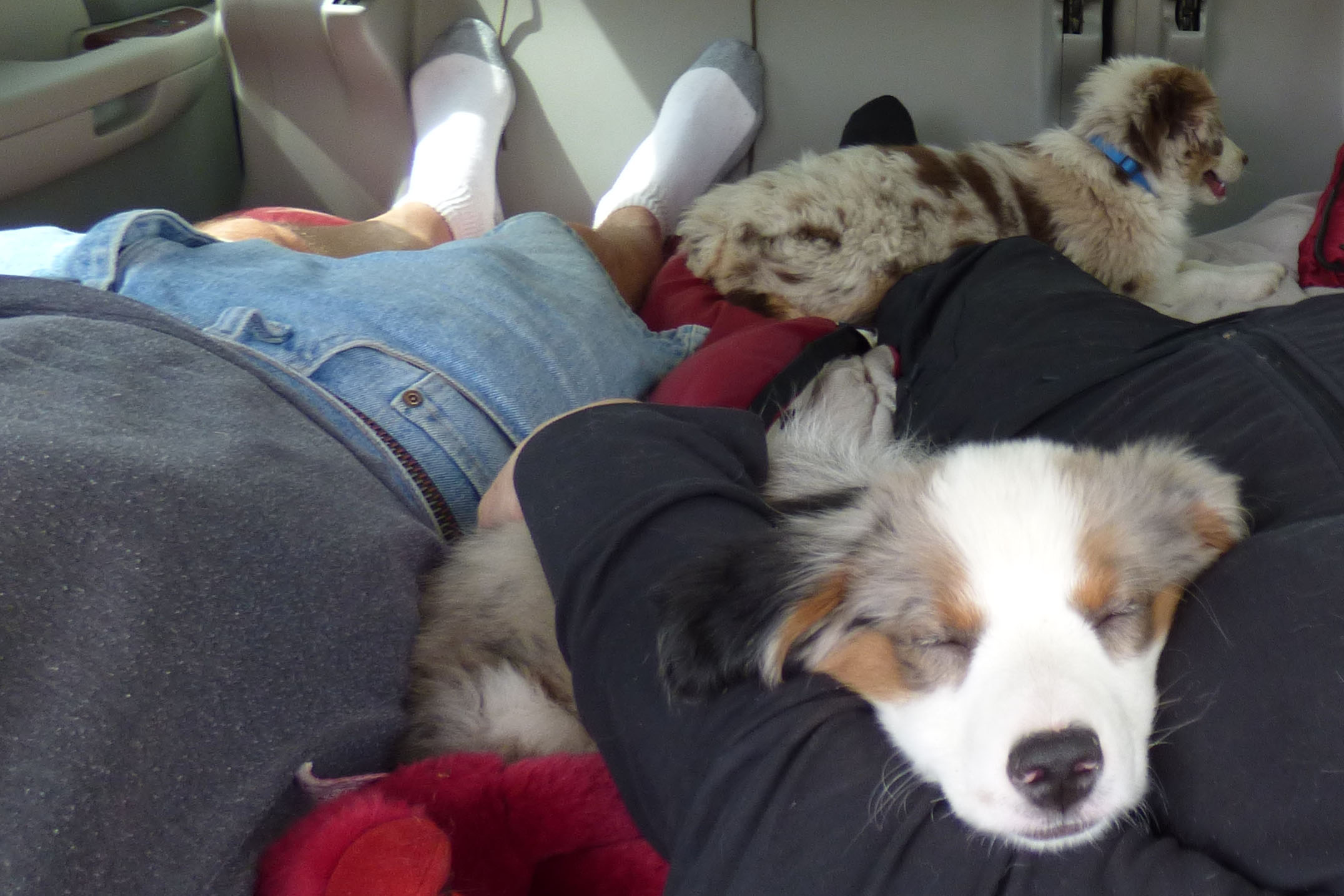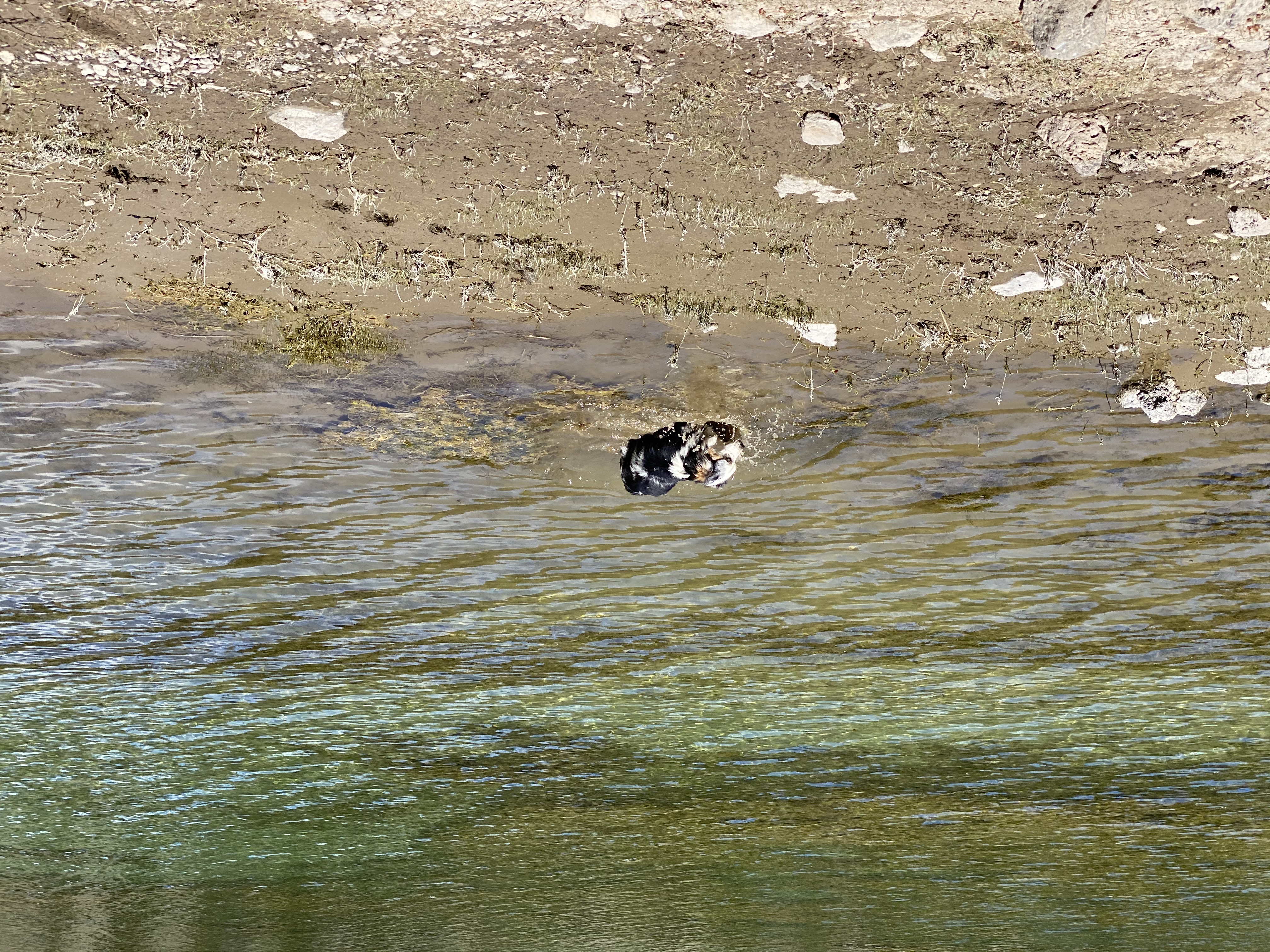 Piper as a gangly puppy with Roni at Mesa Lakes