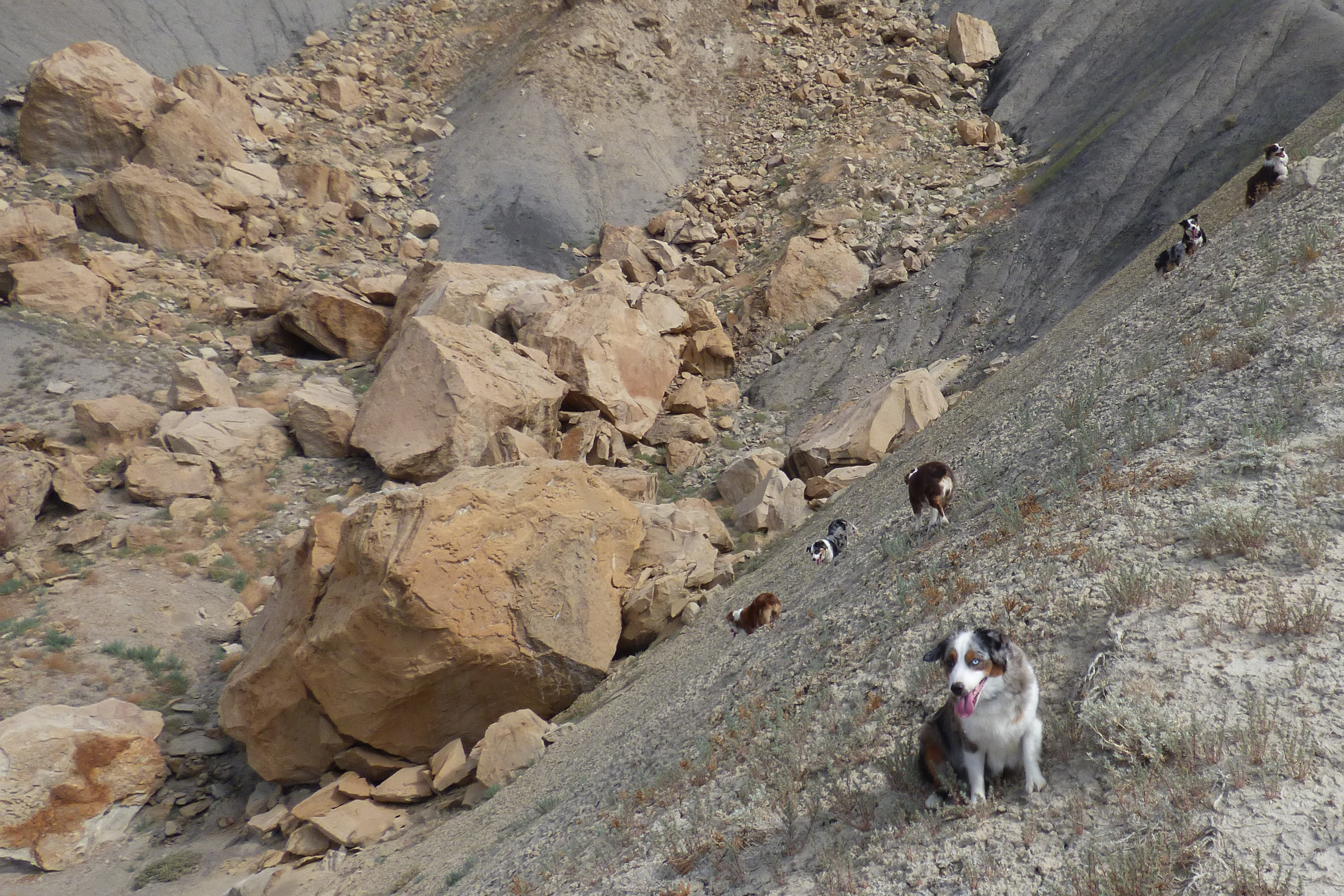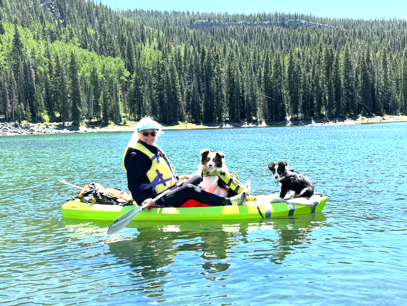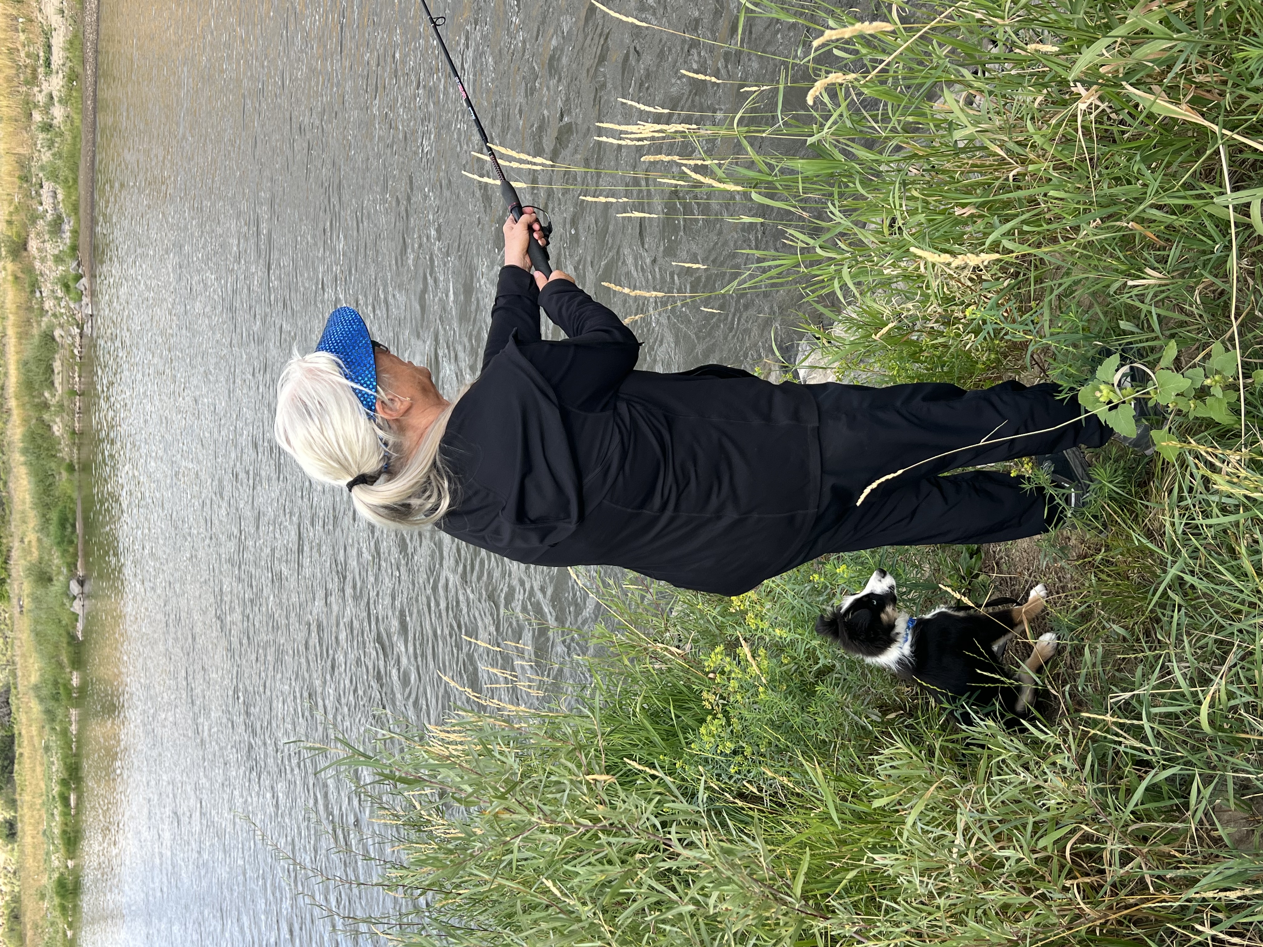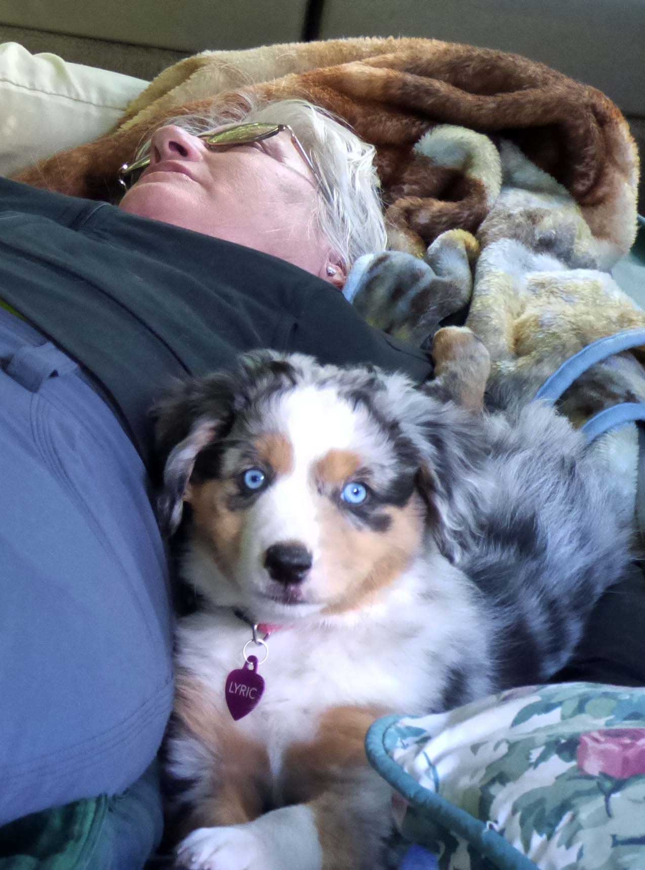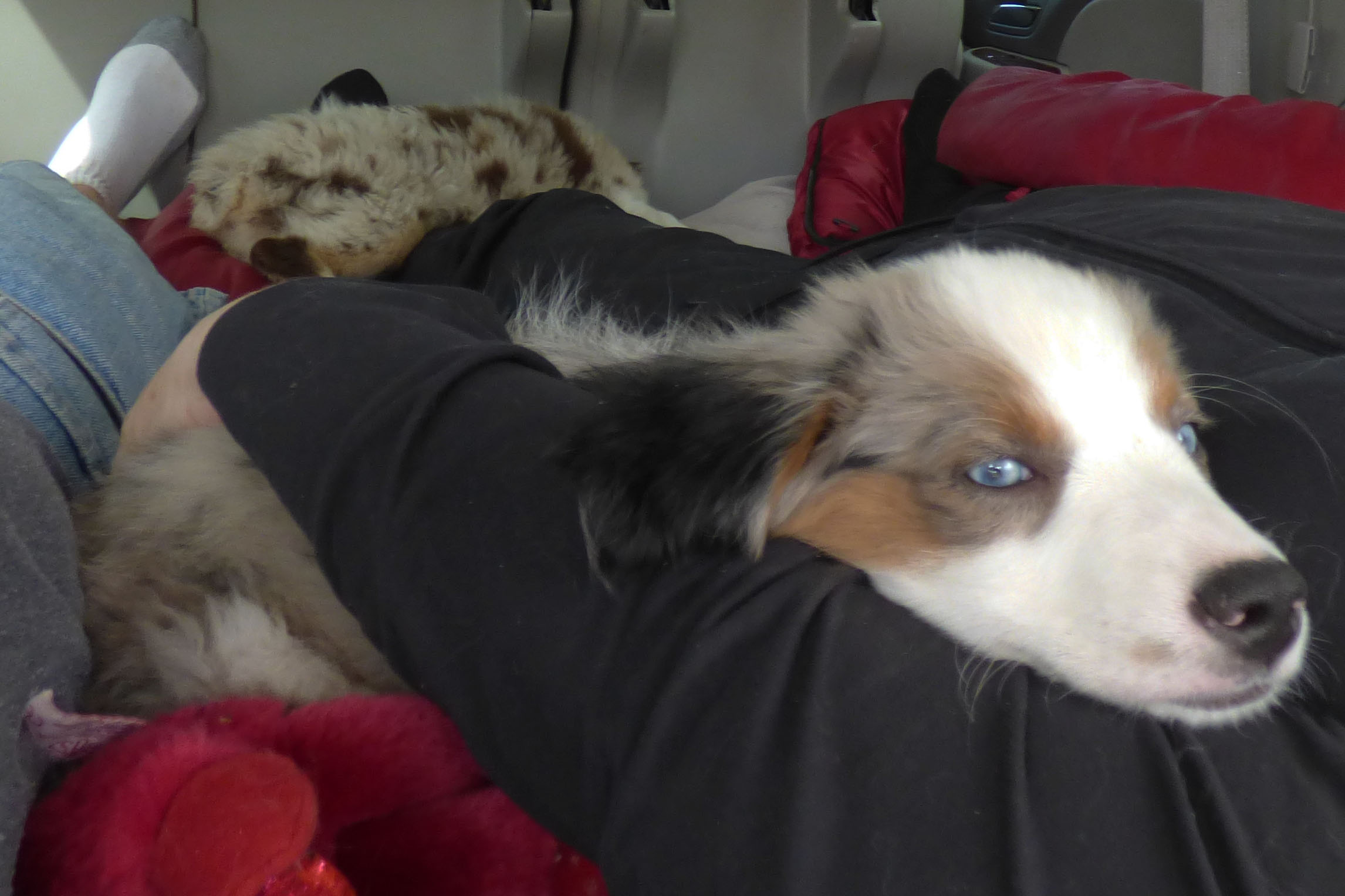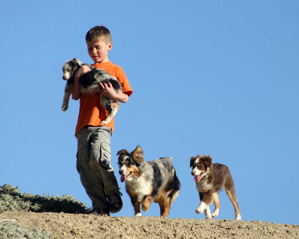 Piper as a gangly puppy with Roni at Mesa Lakes