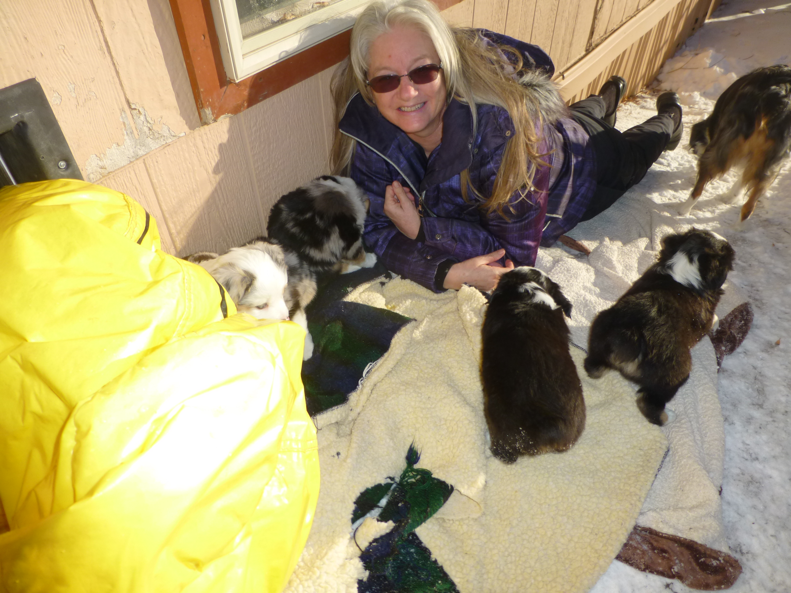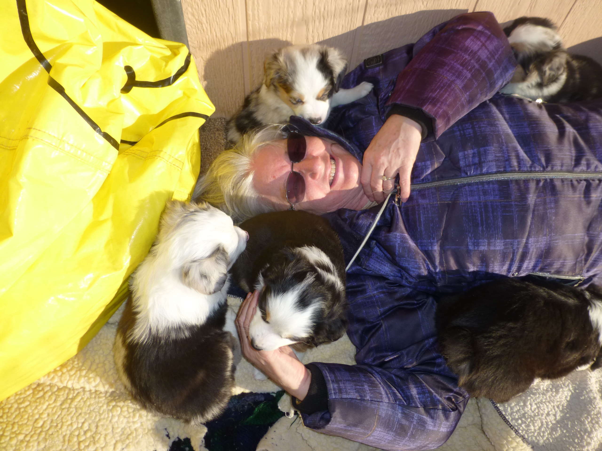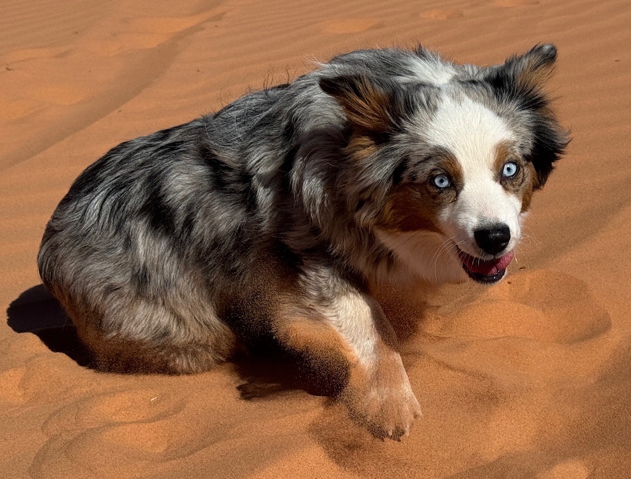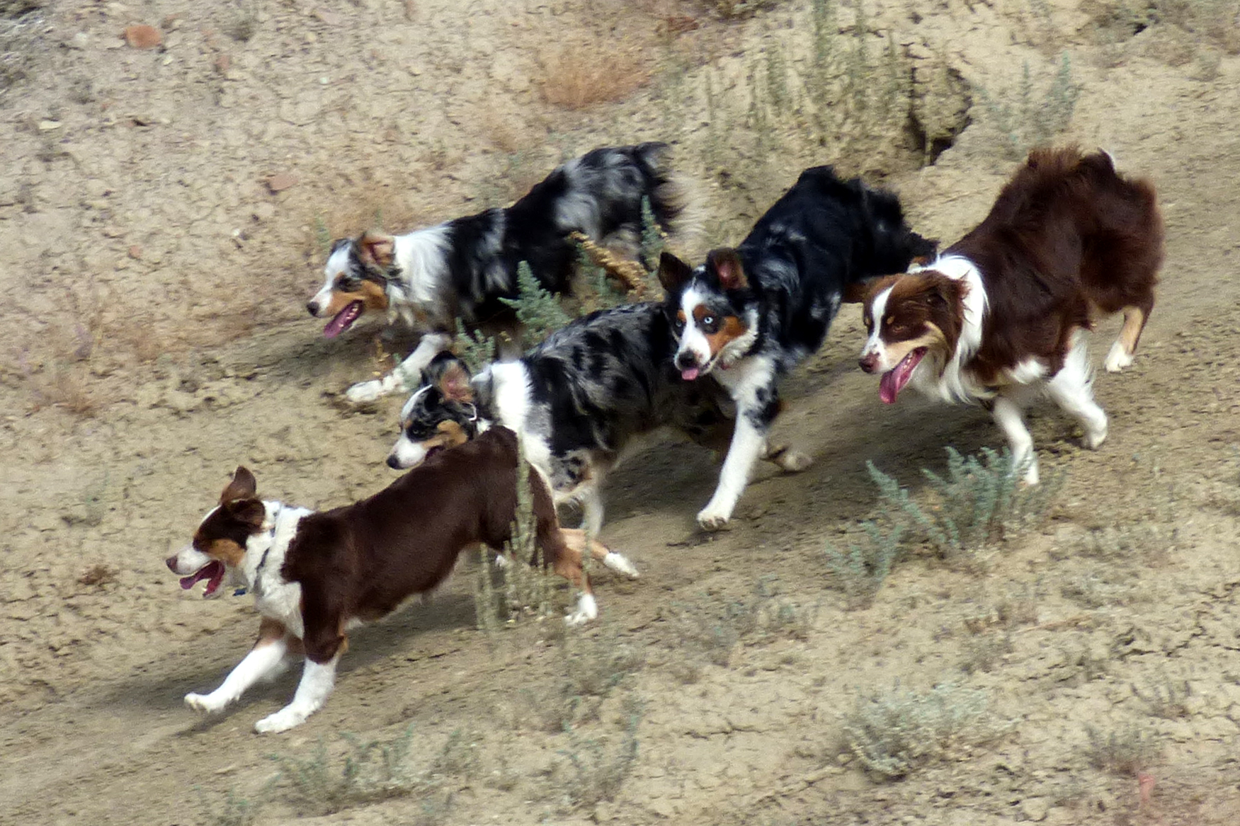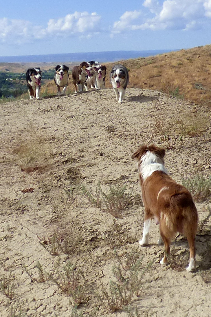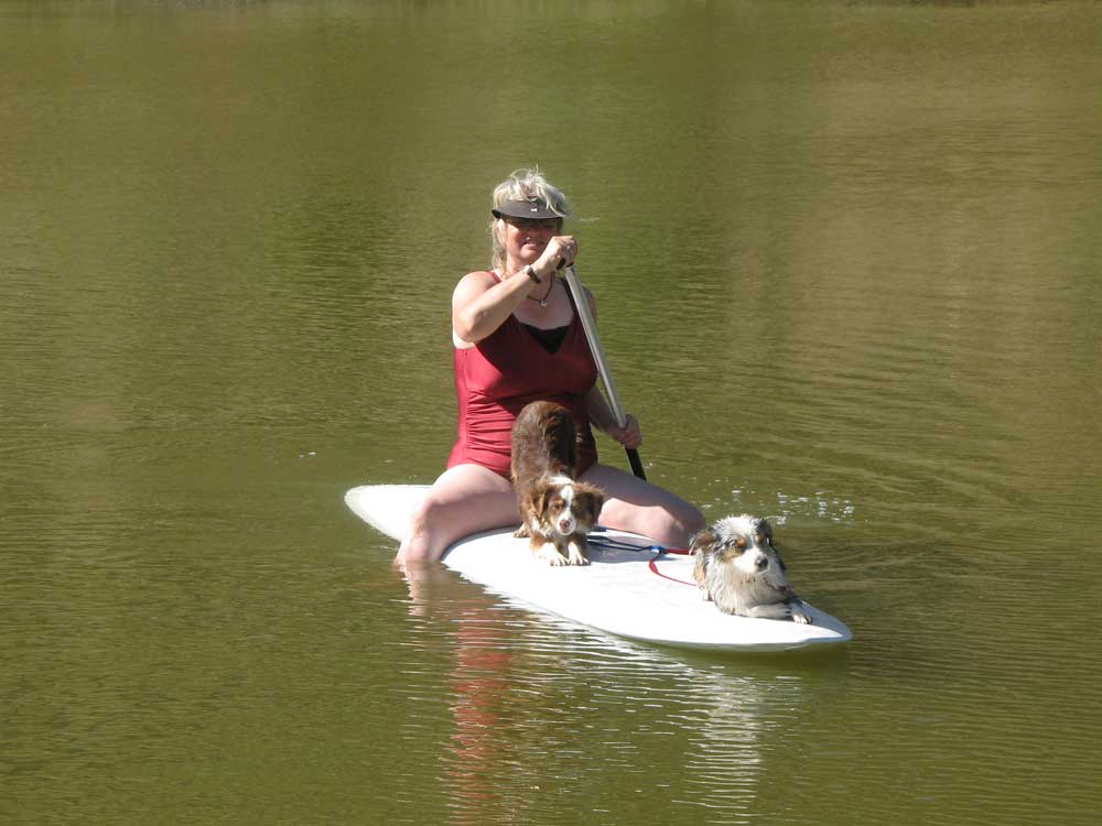 Piper as a gangly puppy with Roni at Mesa Lakes
