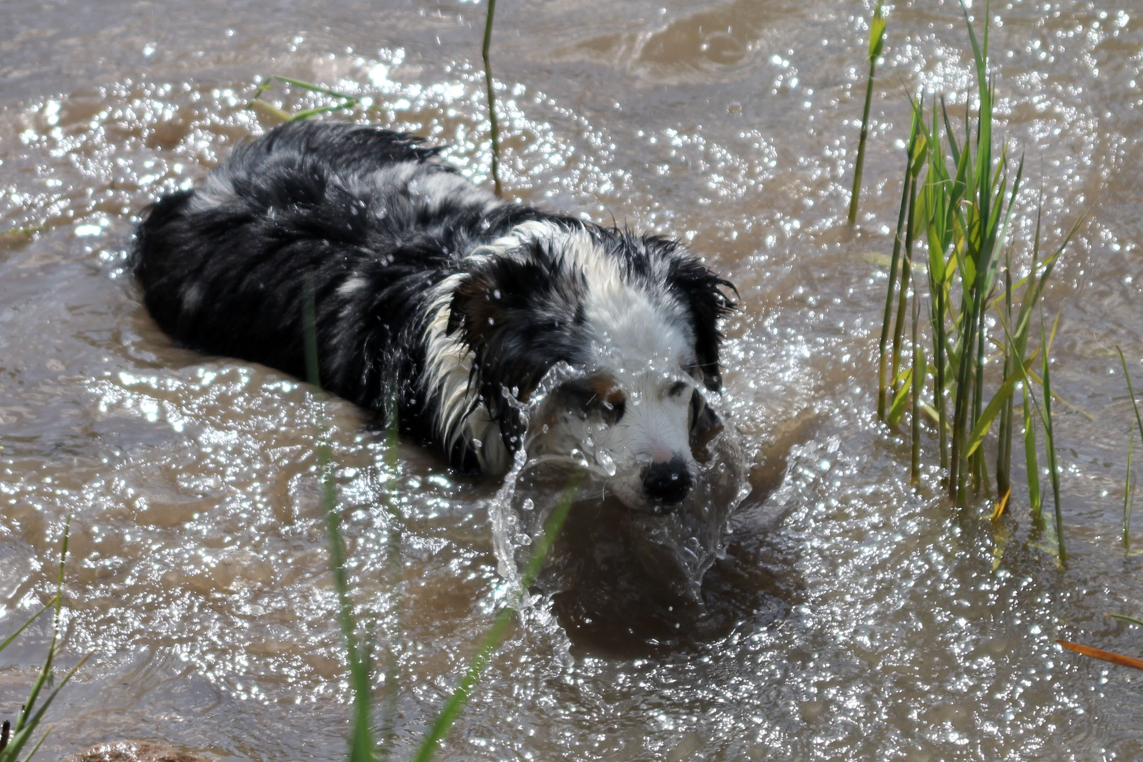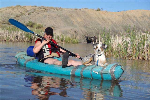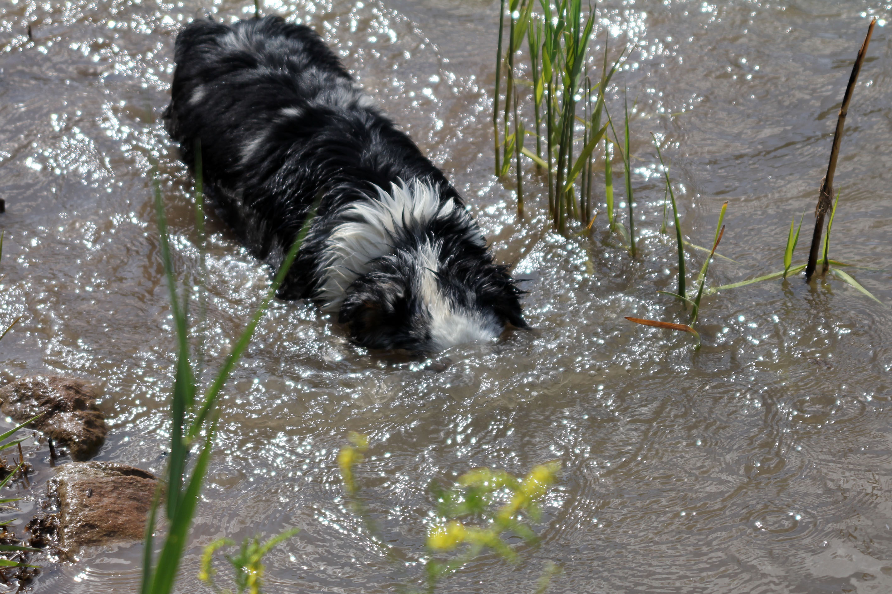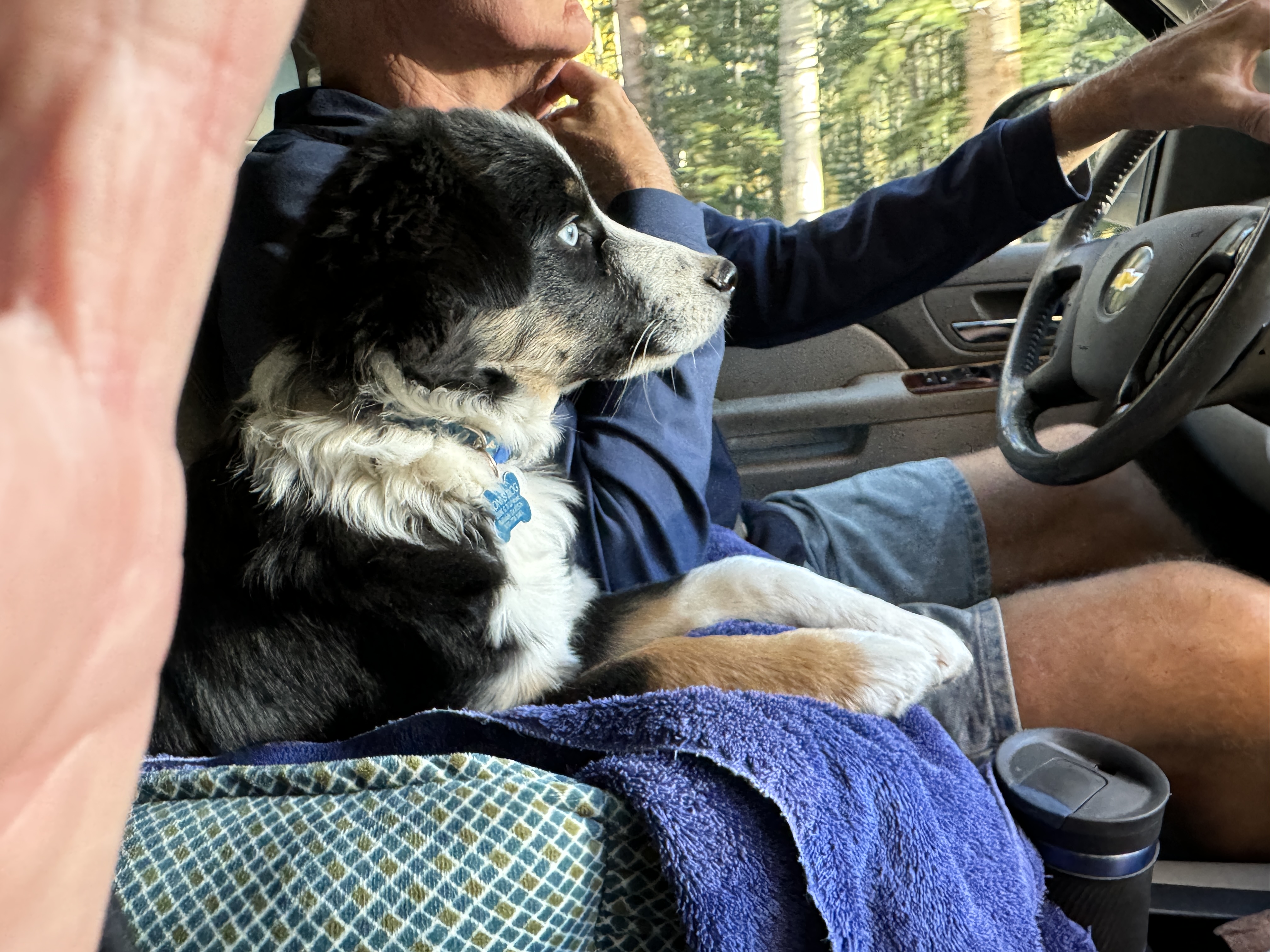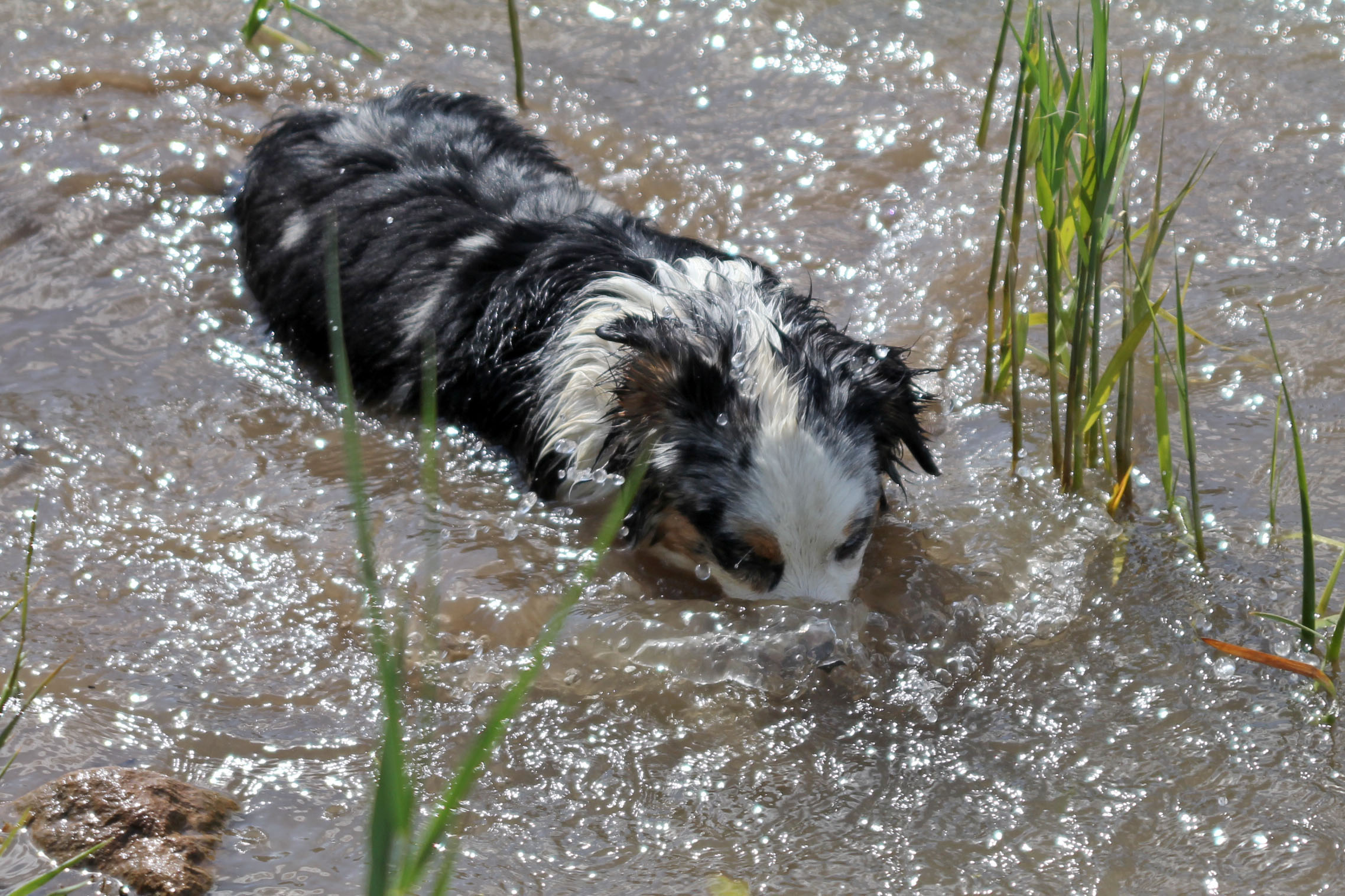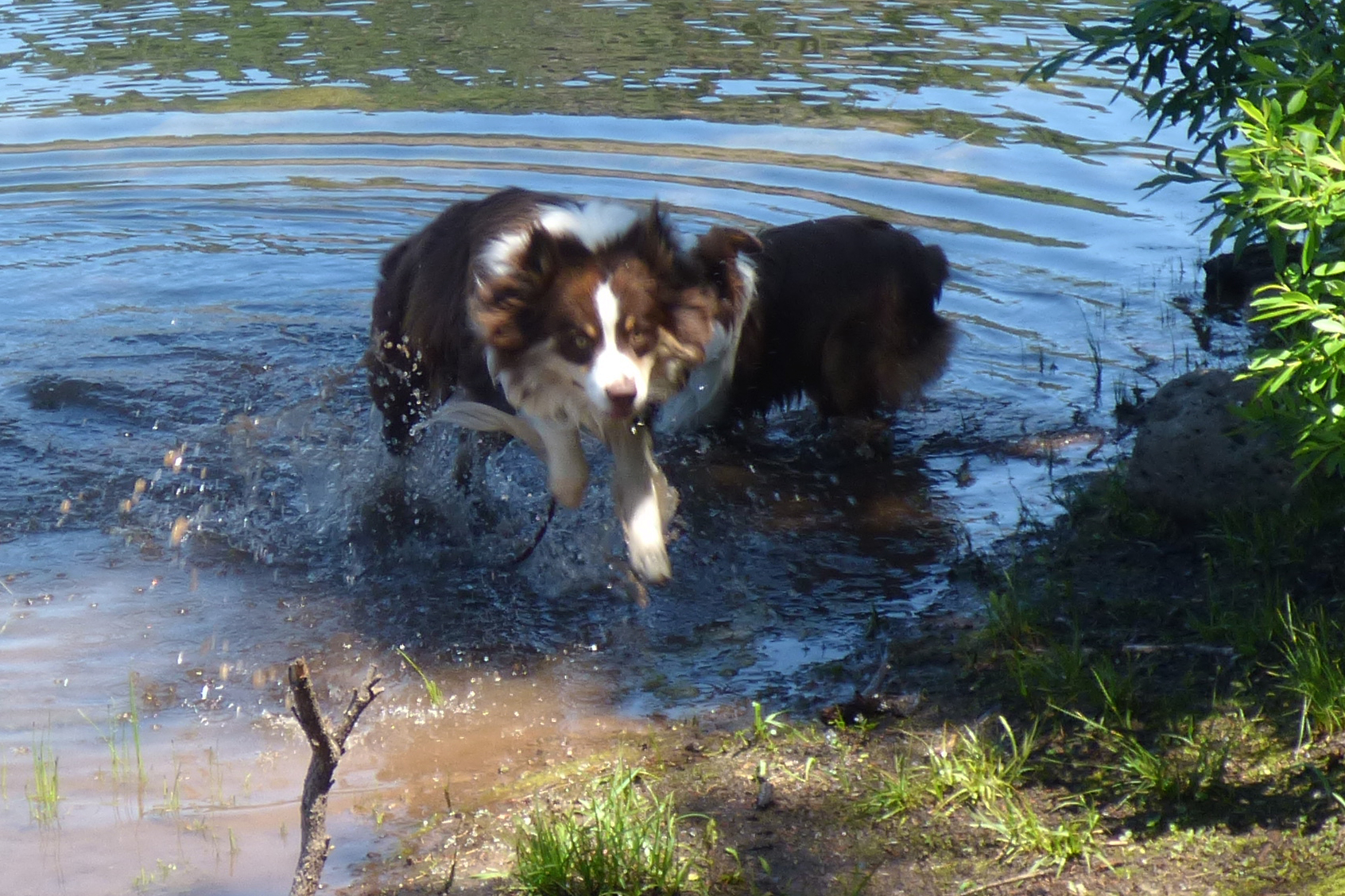 Piper as a gangly puppy with Roni at Mesa Lakes