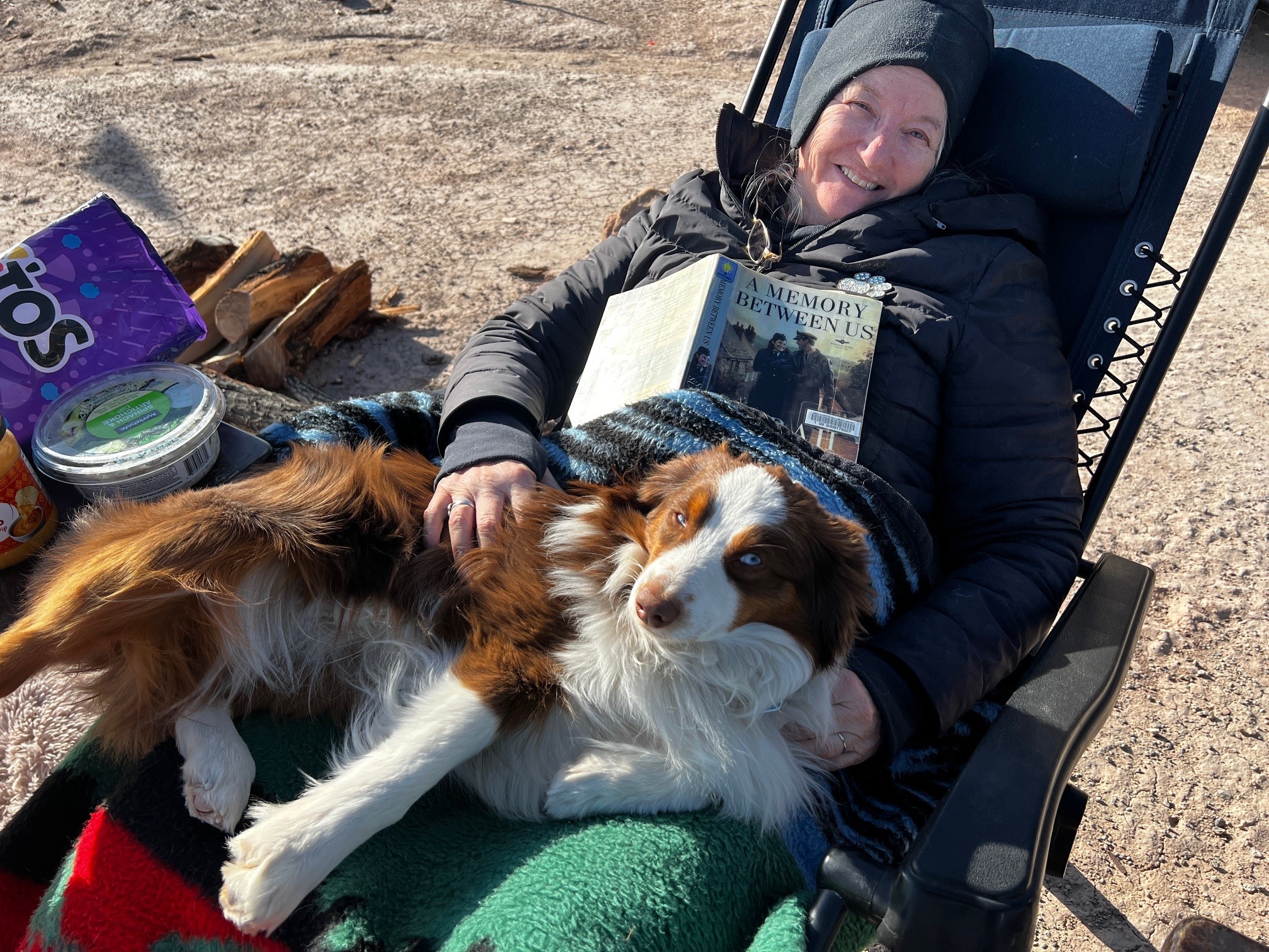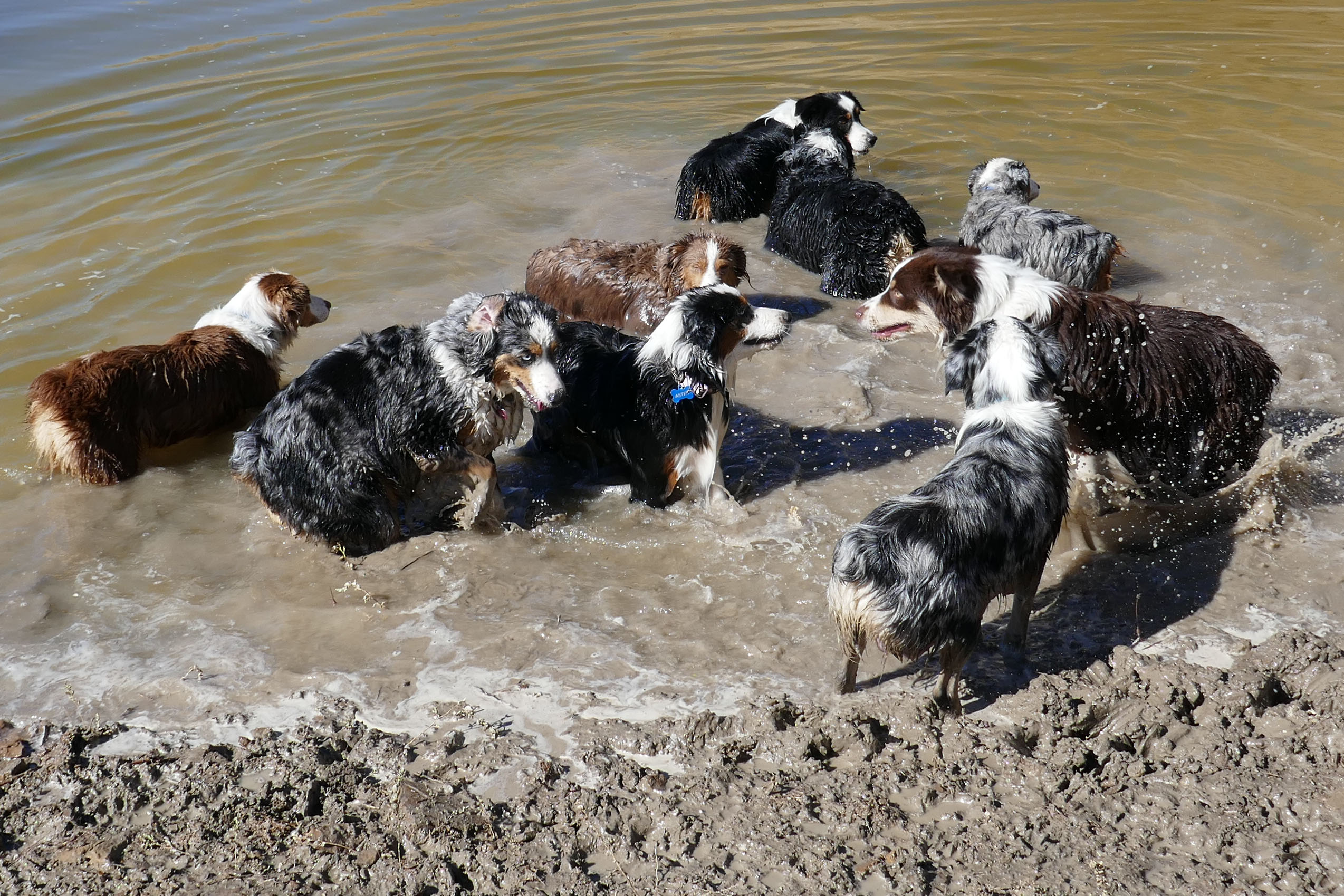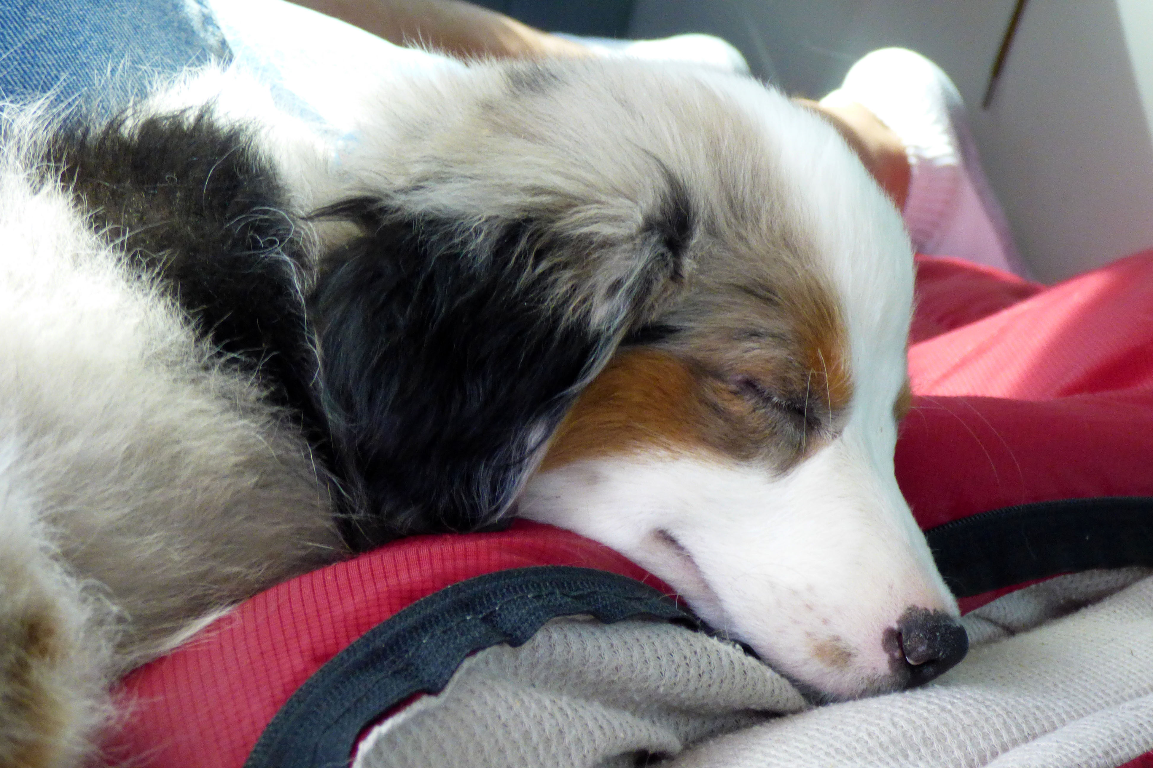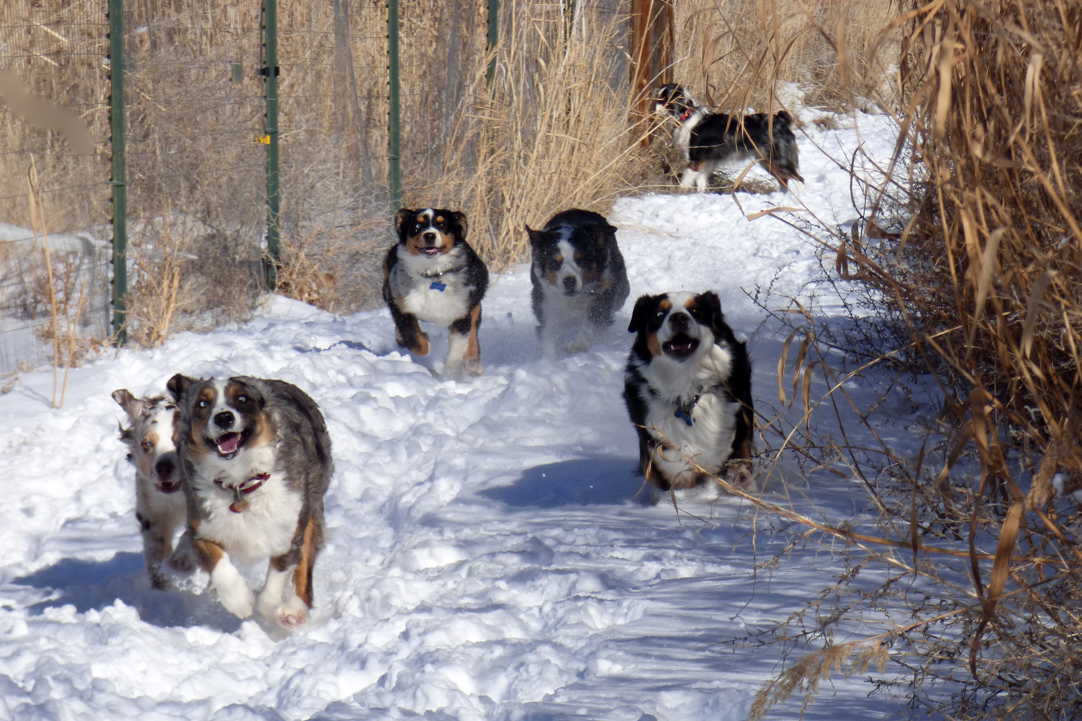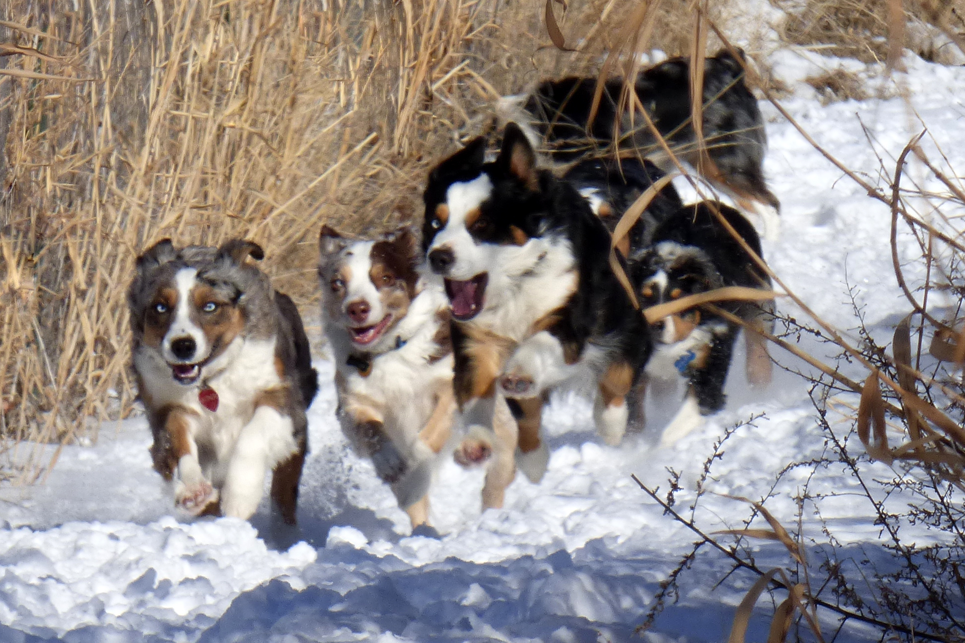 Piper as a gangly puppy with Roni at Mesa Lakes