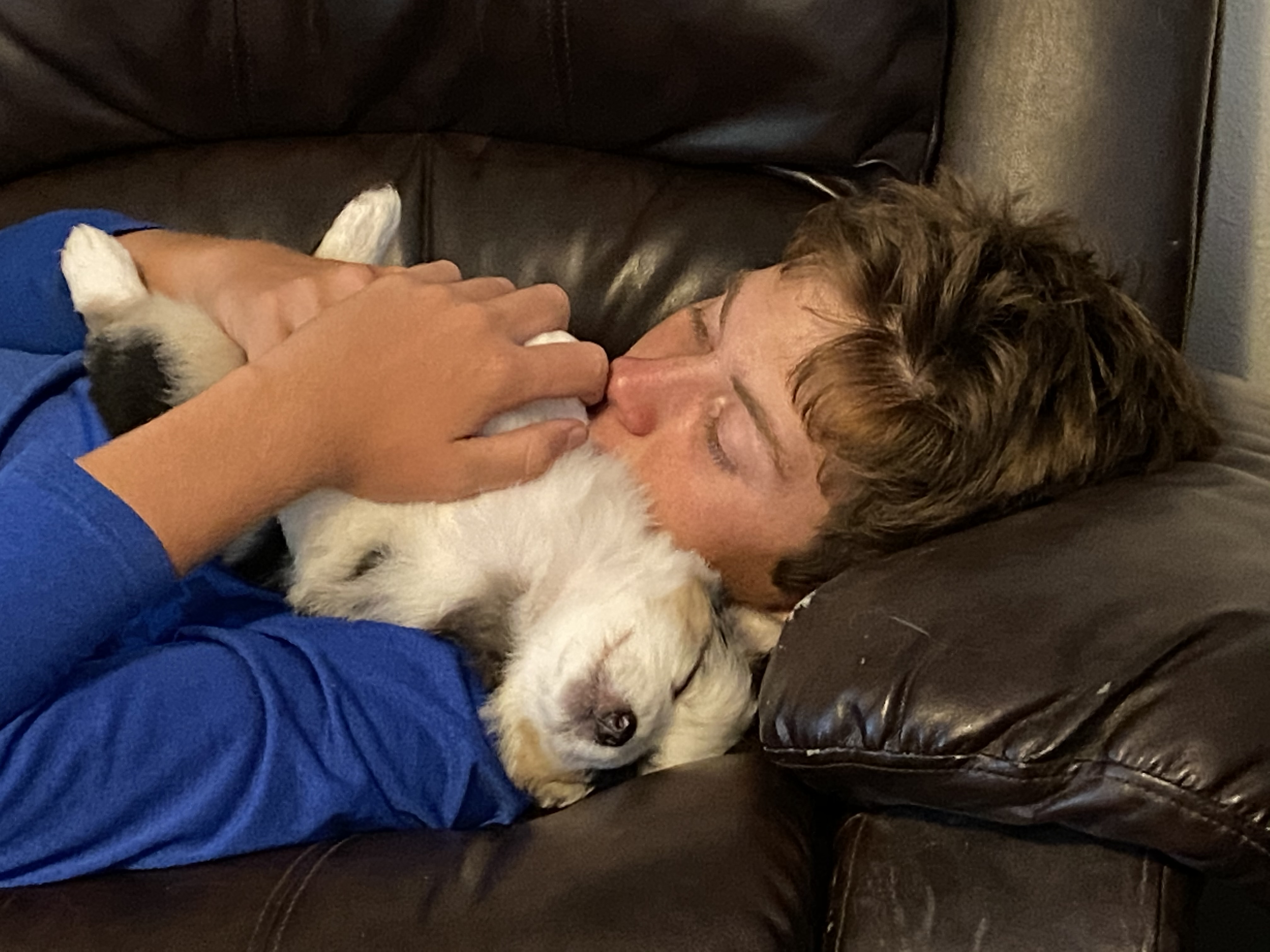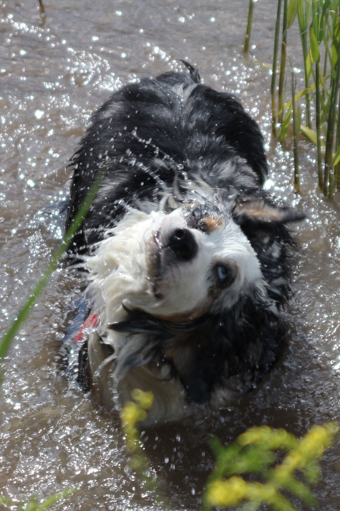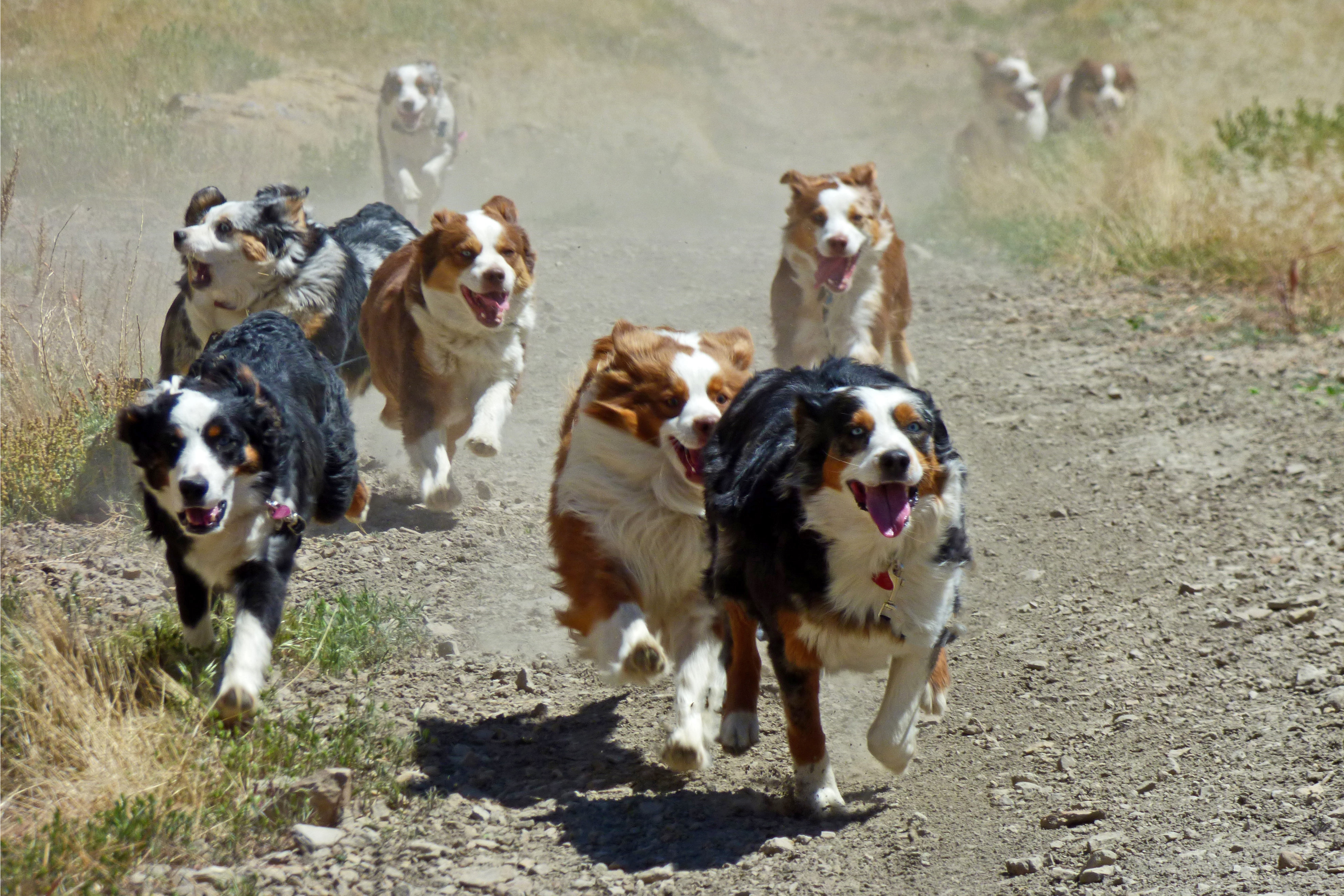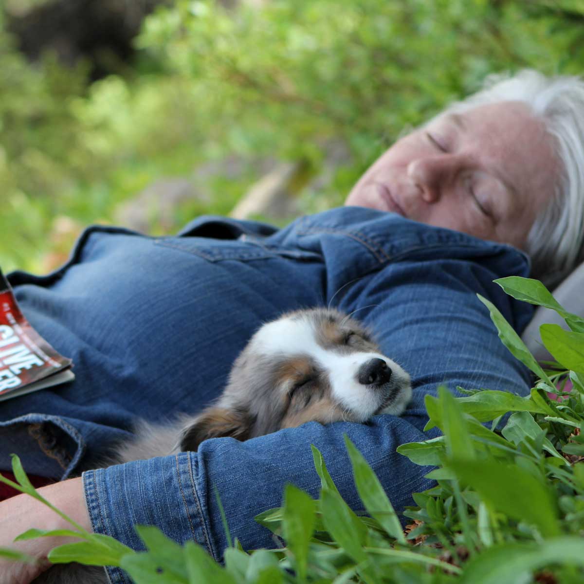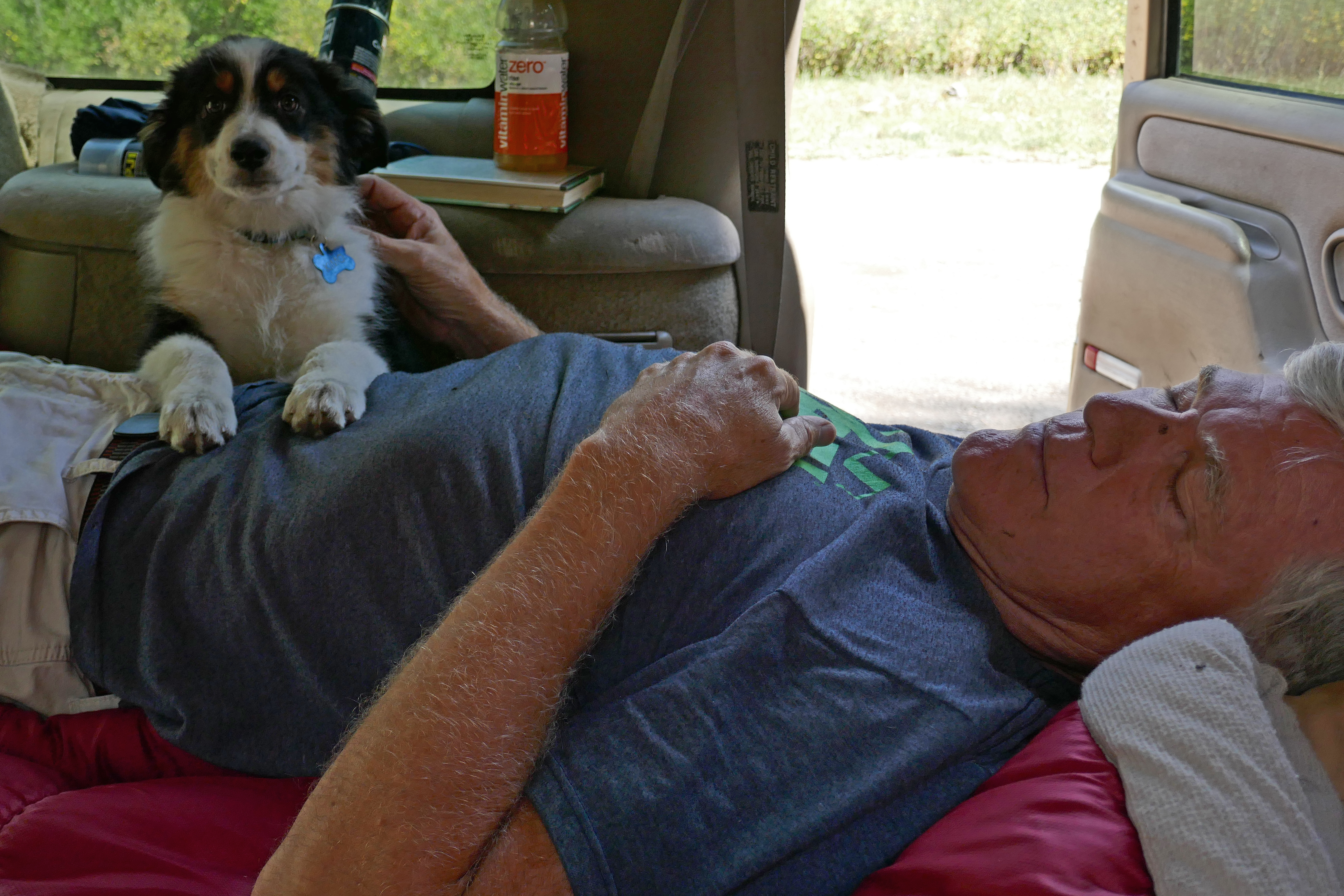 Piper as a gangly puppy with Roni at Mesa Lakes